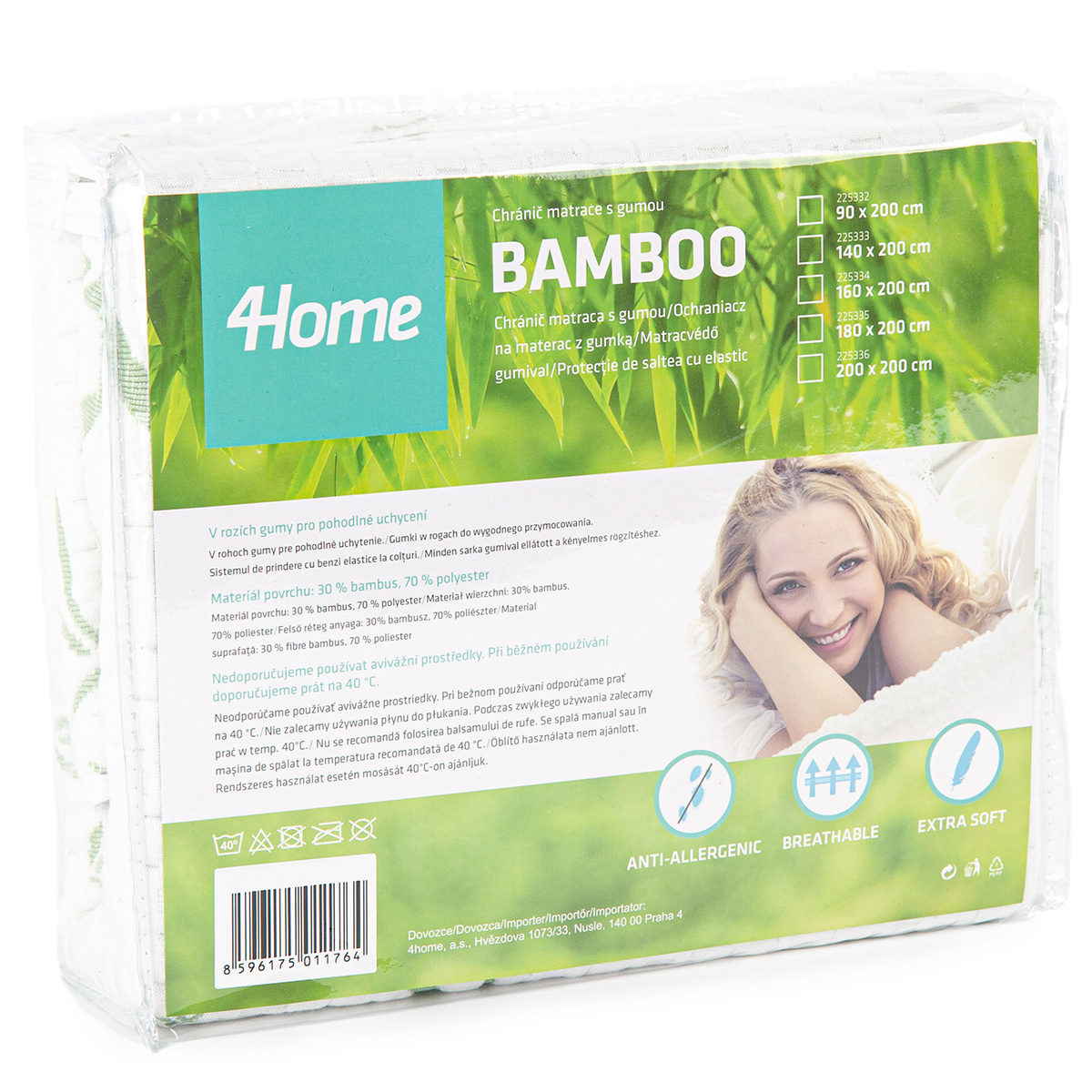 Doprajte si maximálne zdravý spánok. Tento unikátny chránič matraca Bamboo prinesie vašej posteli dokonalú čistotu i pohodlie. Je mäkký, priedušný a vďaka obsahu blahodarných bambusových vlákien má tiež prirodzené antibakteriálne a hypoalergénne vlastnosti. Pravidelné používanie chrániča predlžuje životnosť vášho matraca a bráni prenikaniu potu aj špiny do matraca, zaručí tak dokonalú hygienu vášho lôžka. Chránič matraca ľahko zvlečiete a vyperiete, takže údržba je takmer bez práce.V rohoch chrániča sú praktické gumy pre jednoduché uchytenie k matracu – zostane tak vždy na svojom mieste. Je vhodný na matrace s maximálnou výškou 30 cm.Chránič matraca je opatrený certifikátom Öko-Tex Standard 100.