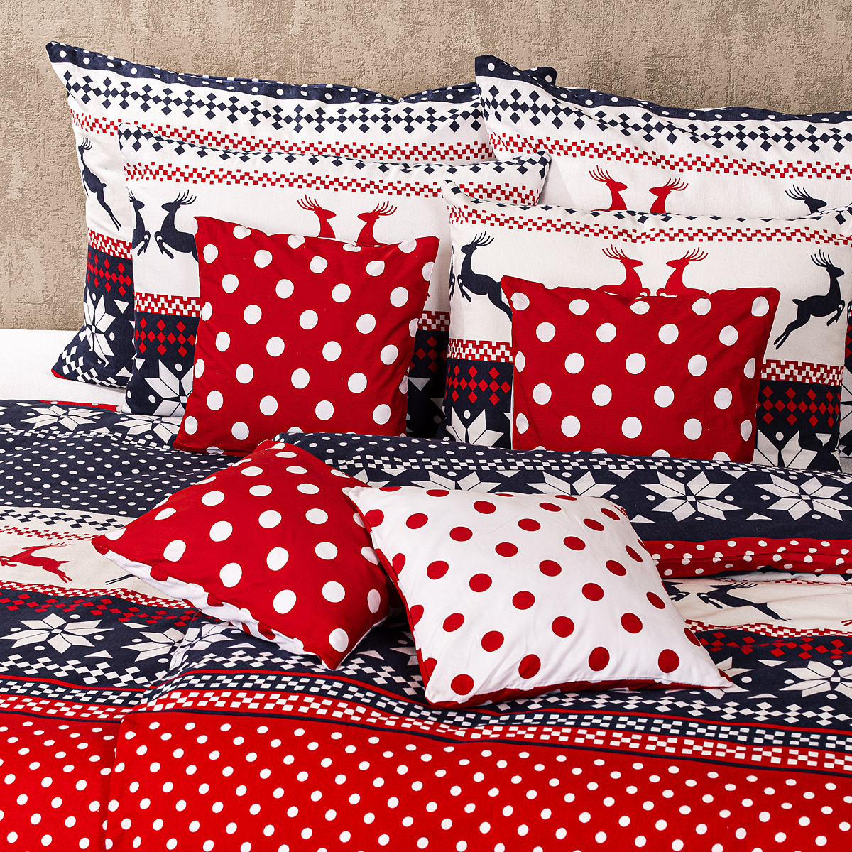 Bavlnené obliečky s tradičným nórskym vzorom urobia z chladných zimných nocí chvíle plné pohody. Veď koho by trápilo sychravé počasie, keď sa môže zababušiť do mäkučkých vianočných obliečok v hravom dizajne so sobmi a bodkami? Obliečky sú z oboch strán rovnaké a majú zapínanie na zips. Obliečka na vankúš je ušitá z metráže, preto sa vzory môžu mierne líšiť.Spoznajte kúzlo kolekcie bytového textilu Nordic, ktorá osobitým spôsobom čerpá inšpiráciu z obľúbeného škandinávskeho dizajnu a dodá vášmu domovu harmóniu severského bývania. Kolekcia Nordic ponúka pre každého niečo: jemné pastelové farby, neutrálne farebné ladenie, prírodné a zvieracie motívy či výrazné a tradičné folklórne vzory.Súprava obsahuje: