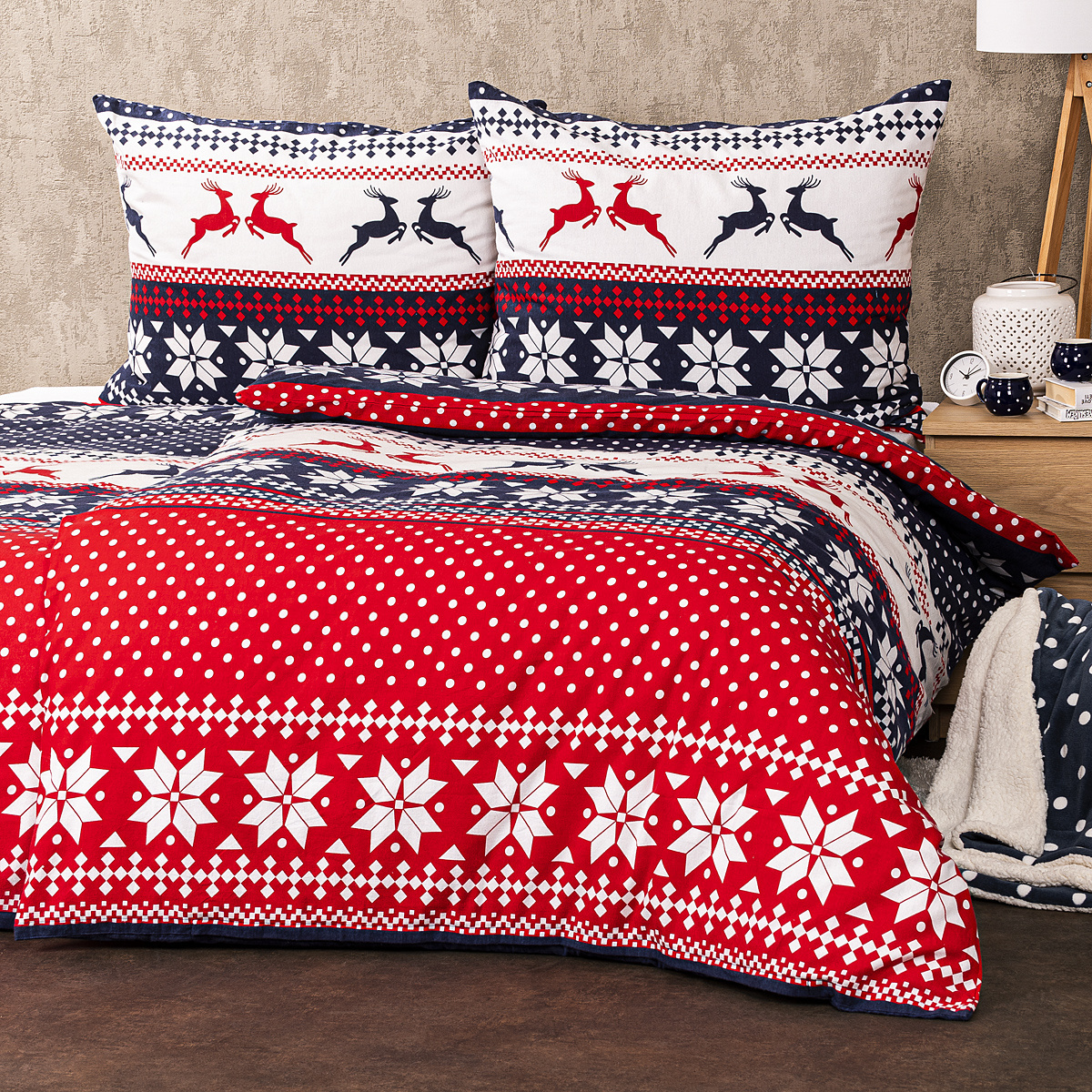 Bavlnené obliečky s tradičným nórskym vzorom urobia z chladných zimných nocí chvíle plné pohody. Veď koho by trápilo sychravé počasie, keď sa môže zababušiť do mäkučkých vianočných obliečok v hravom dizajne so sobmi a bodkami? Obliečky sú z oboch strán rovnaké a majú zapínanie na zips. Obliečka na vankúš je ušitá z metráže, preto sa vzory môžu mierne líšiť.Spoznajte kúzlo kolekcie bytového textilu Nordic, ktorá osobitým spôsobom čerpá inšpiráciu z obľúbeného škandinávskeho dizajnu a dodá vášmu domovu harmóniu severského bývania. Kolekcia Nordic ponúka pre každého niečo: jemné pastelové farby, neutrálne farebné ladenie, prírodné a zvieracie motívy či výrazné a tradičné folklórne vzory.Súprava obsahuje: