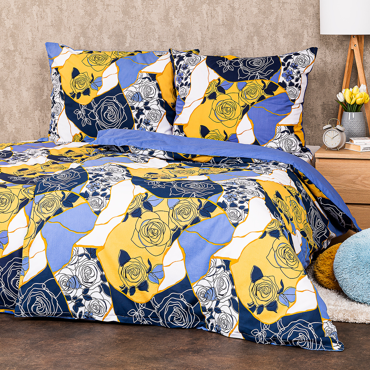 Oživte svoju spálňu bavlnenými obliečkami v nevšednom dizajne. Svieže ladenie do modrej a žltej zaujme hneď na prvý pohľad a v kombinácii s originálnym abstraktným vzorom potom tvorí perfektný doplnok na oživenie každého interiéru. Navyše sú obliečky vyrobené z mäkkej a príjemnej 100% bavlny, ktorá zaručí pohodlný spánok.Obliečky sú obojstranné – z jednej strany vzorované, druhá strana je jednofarebná, modrá. Môžete ich teda ľubovoľne kombinovať a meniť svoju posteľ každý deň. Pre maximálne pohodlie majú obliečky praktické zapínanie na zips.Súprava obsahuje: