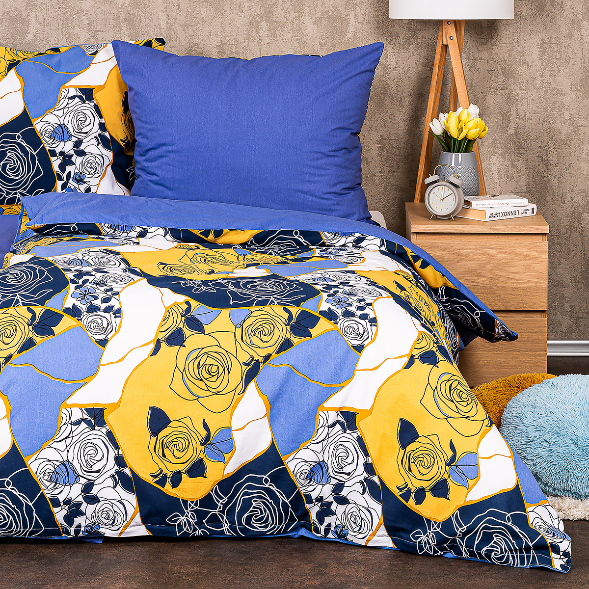Oživte svoju spálňu bavlnenými obliečkami v nevšednom dizajne. Svieže ladenie do modrej a žltej zaujme hneď na prvý pohľad a v kombinácii s originálnym abstraktným vzorom potom tvorí perfektný doplnok na oživenie každého interiéru. Navyše sú obliečky vyrobené z mäkkej a príjemnej 100% bavlny, ktorá zaručí pohodlný spánok.Obliečky sú obojstranné – z jednej strany vzorované, druhá strana je jednofarebná, modrá. Môžete ich teda ľubovoľne kombinovať a meniť svoju posteľ každý deň. Pre maximálne pohodlie majú obliečky praktické zapínanie na zips.Súprava obsahuje: