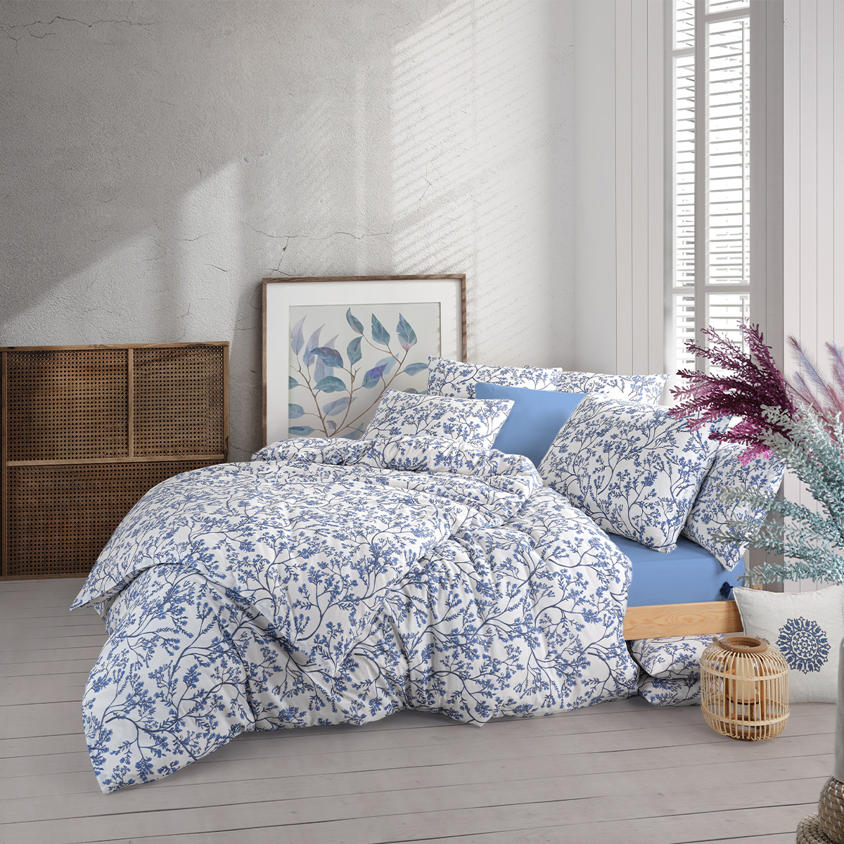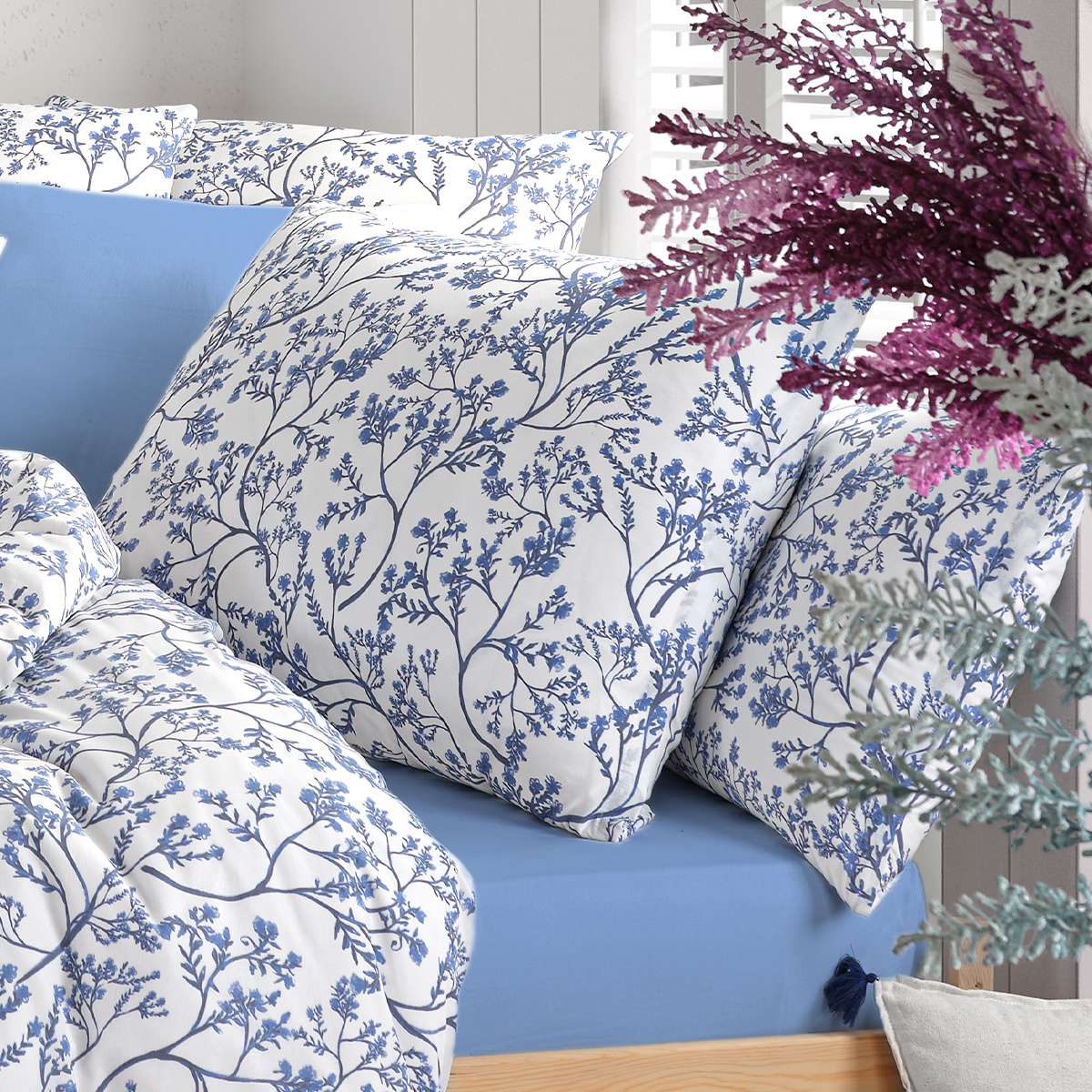 Doprajte si to najpohodlnejšie zaspávanie s bavlnenými obliečkami renforcé. Romantický motív vetvičiek v kombinácii s jemným odtieňom modrej a bielej farby vnesie do vašej spálne pocit harmónie a pokoja. Vďaka svojmu elegantnému a decentnému vzhľadu sa navyše skvele hodia k rôznym dekoratívnym štýlom.Obliečky z príjemného materiálu si zachovávajú všetky obľúbené vlastnosti bavlny a v úprave renforcé získavajú viac vzdušnosti. Navyše si môžete užiť aj ľahšiu údržbu, pretože na rozdiel od klasickej bavlny sa obliečky menej krčia a lepšie schnú. Obliečky sú z oboch strán rovnaké a majú zapínanie na zips.Súprava obsahuje: