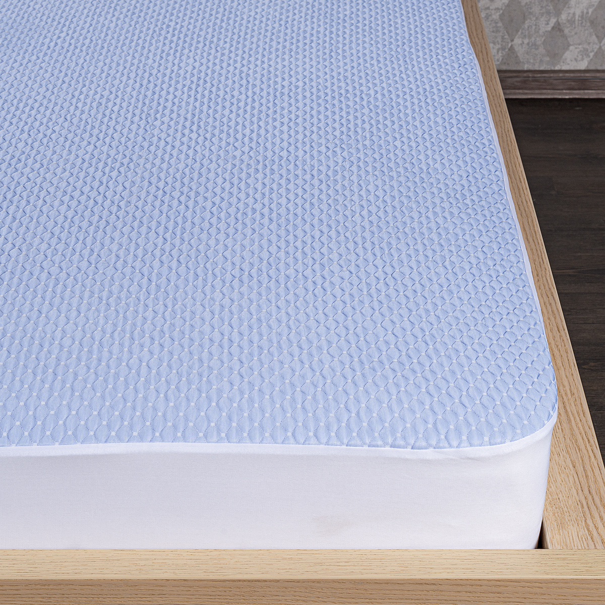 Pokojný a zdravý spánok aj v tých najväčších horúčavách? Kúpte si nepriepustný chladiaci chránič matraca! Tento unikátny chránič tvoria z 30 % špeciálne chladiace vlákna, ktoré zaistia príjemný spánok, ak napríklad trpíte nadmerným potením a príjemne vás ochladí aj počas teplých dní. Je mäkký, priedušný a zaistí maximálne pohodlie. Pravidelné používanie chrániča predlžuje životnosť vášho matraca a zabraňuje prenikaniu potu aj špiny do matraca, zaručí tak dokonalú hygienu vášho lôžka. Chránič matraca ľahko zvlečiete a vyperiete, takže údržba je takmer bez práce.Vďaka nepriepustnej úprave v podobe polyuretánového záteru sa navyše nemusíte báť žiadnych nepríjemných nehôd, ktoré by nenávratne poškodili váš matrac. Je teda skvelý aj pre deti. Chránič je opatrený praktickým lemom pre jednoduché uchytenie k matracu – používa sa rovnako jednoducho ako napínacie prestieradlo a je vhodný na matrac s maximálnou výškou 30 cm. Chránič matraca je opatrený certifikátom Öko-Tex Standard 100.