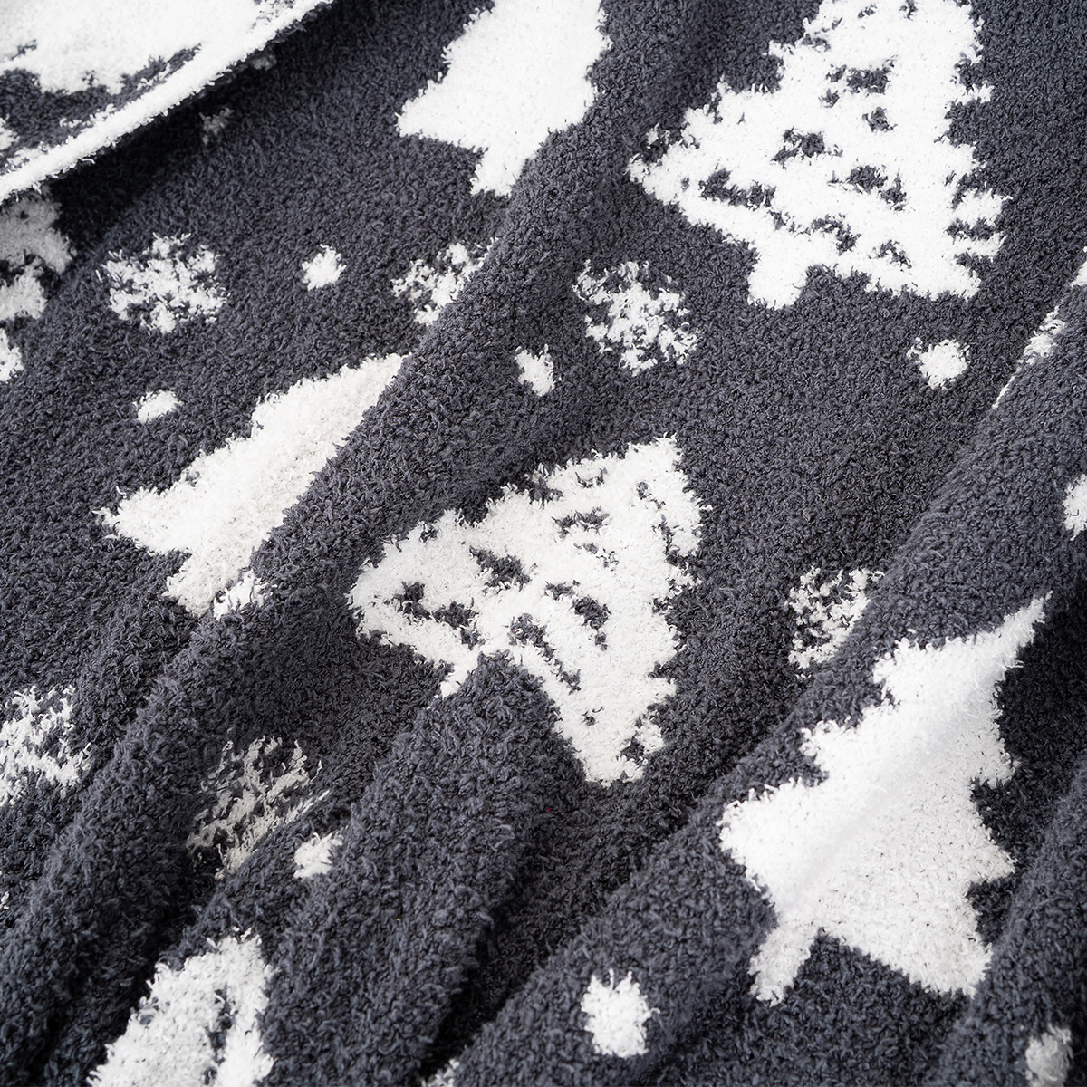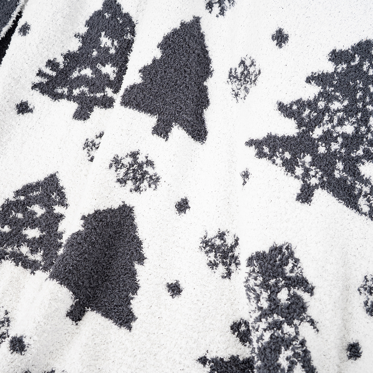 mäkká a hrejivá deka s motívom stromčekov a vločiek