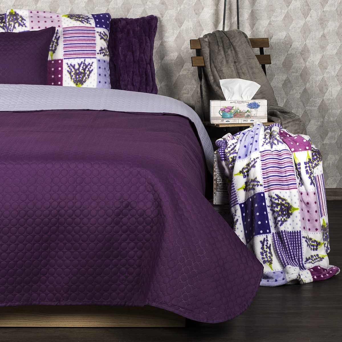 ArtFir Prikrývka na posteľ DAVOS 2 | fialová/sivá 170 x 210 cm