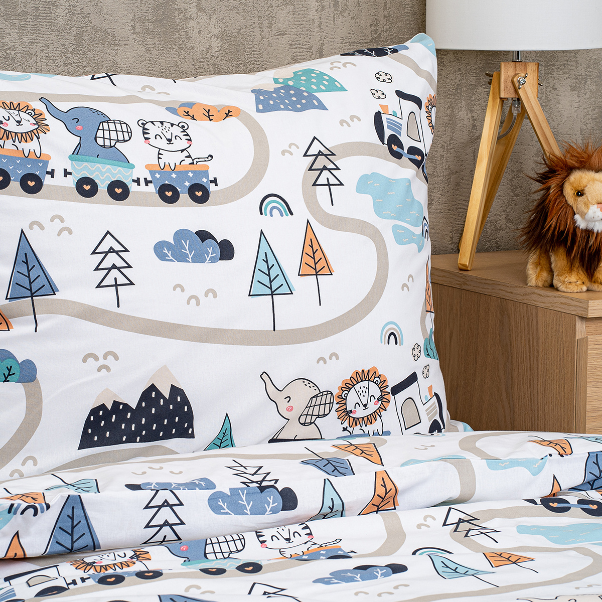 Detské bavlnené obliečky Happy train od značky 4Home sú ideálnym spoločníkom pre všetkých malých dobrodruhov, ktorí sa radi vydávajú do sveta fantázie. Veselý vláčik plný roztomilých zvieratiek premení každé zaspávanie na hravú výpravu. Jemné pastelové odtiene modrej, oranžovej a sivej na bielom podklade pôsobia príjemne a hodia sa do každej detskej izbičky, či už ju ladíte do akejkoľvek farby. Obliečky majú rovnaký vzor z oboch strán, čo zjednošuje zastielanie.