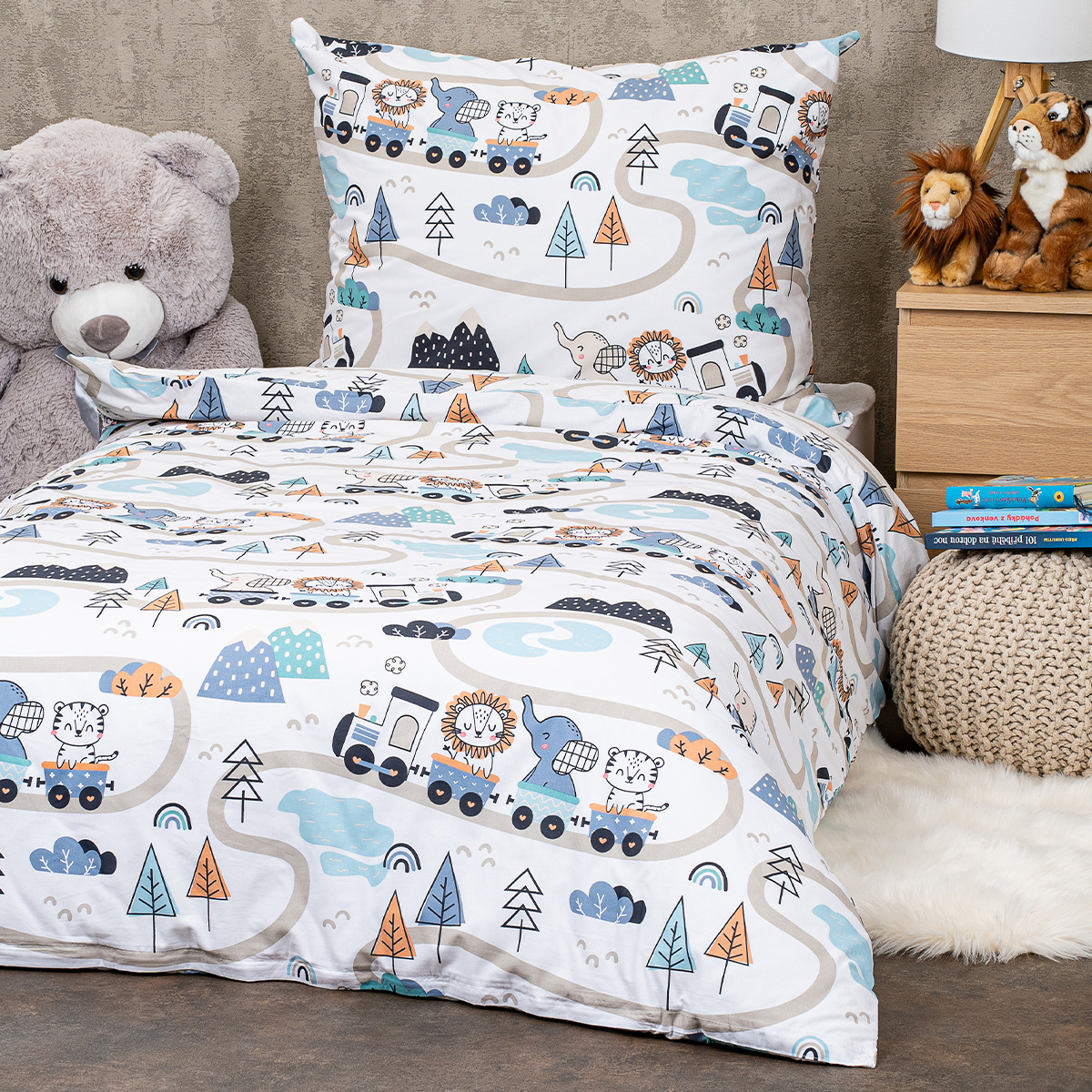 hravý motív vláčika so zvieratkami poteší každé dieťa
