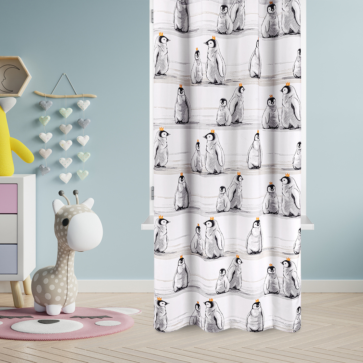Ozdobte okná detskej izbičky roztomilým závesom, ktorý vašim najmenším vyčarí úsmev na tvári. Veselý motív tučniakov s korunkami na svetlom podklade je decentný, ale rozhodne rozžiari očká každého dieťaťa. Záves v okamihu zútulní detskú izbu a poskytne príjemné zatienenie aj súkromia pred zvedavými pohľadmi zvonku. Je vyrobený z kvalitného mikrovlákna, zavesenie na krúžky.