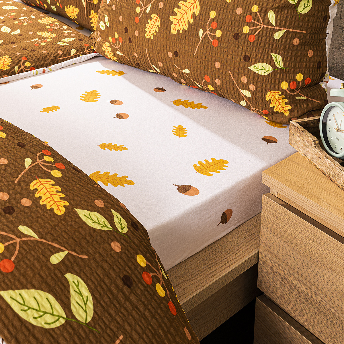 Doprajte si ten najpohodlnejší spánok s kvalitným prestieradlom v originálnom dizajne. Nudným jednofarebným prestieradlám už odzvonilo, oživte svoju posteľ upokojujúcim jesenným vzorom na bielom podklade. Napínacie jersey prestieradlo z kvalitnej bavlny sa vďaka gume po obvode skvelo prispôsobí vašemu matracu a zaručí vám tak pohodlný spánok.