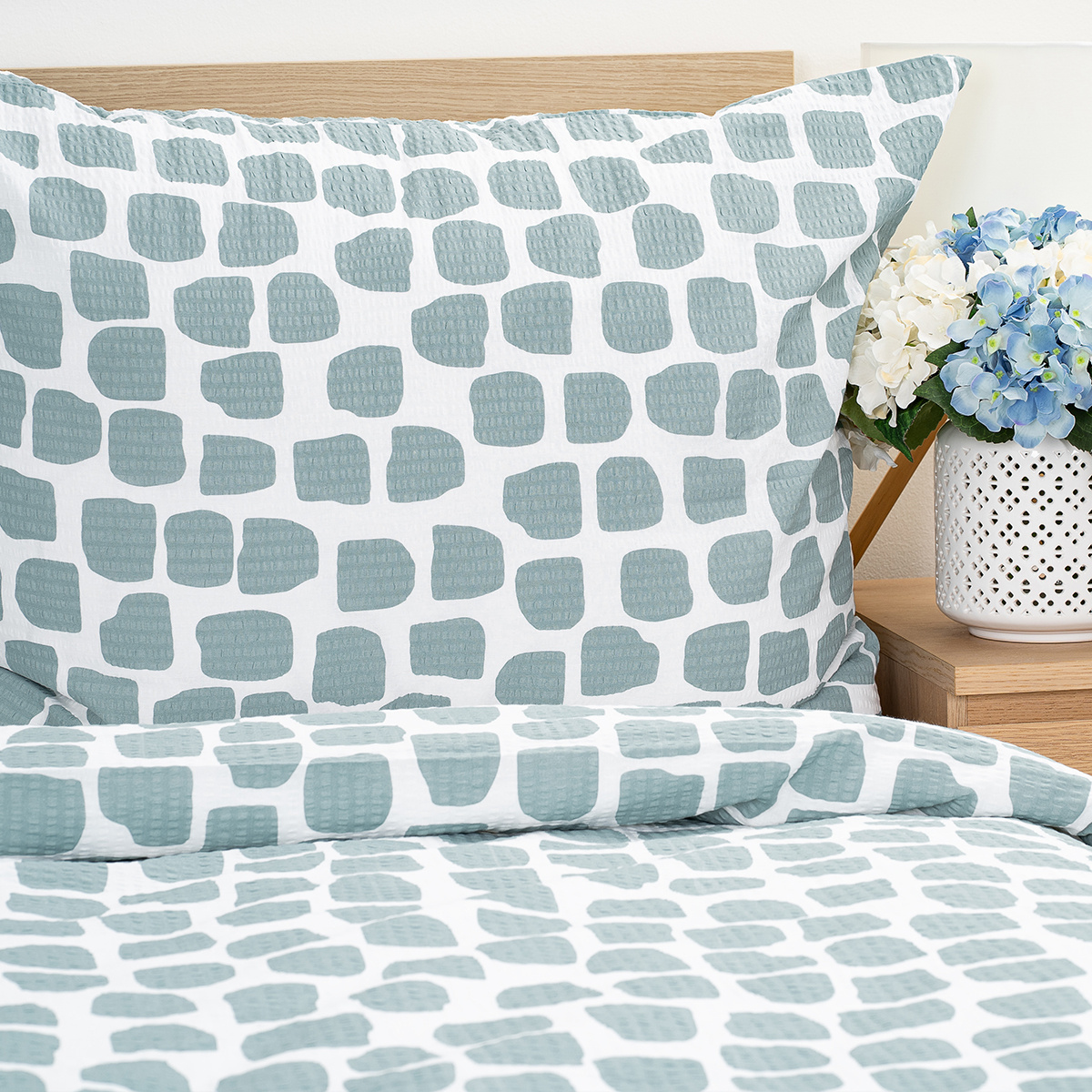 Krepové obliečky Stone od našej vlastnej značky 4Home prinesú do vašej spálne moderný nadčasový dizajn inšpirovaný prírodnými motívmi. Jemný vzor nepravidelných kamienkov v sivasto modrom odtieni na svetlom podklade vytvára minimalistický vzhľad, ktorý sa hodí do každého interiéru.Vyrobené z kvalitného krepového materiálu, obliečky sú ľahučké, vzdušné a veľmi príjemné na dotyk. Nežehlivá úprava ušetrí čas pri údržbe, zatiaľ čo priedušná 100% bavlna zaistí komfortný spánok po celý rok. Praktické zapínanie na zips uľahčuje povliekanie a udržuje prikrývku aj vankúš pevne na mieste.Vďaka jednoduchému elegantnému vzoru sa obliečky skvele hodia ako do moderných, tak klasických spální a vytvoria harmonickú atmosféru.Hlavné výhody produktu: