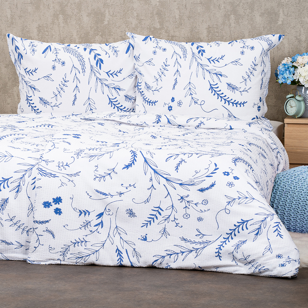 Doprajte si pohodlný spánok s okúzľujúcimi krepovými obliečkami Wildflowers. Elegantný a romantický prírodný motív v modro-bielej kombinácii je osviežujúcou voľbou pre každú spálňu, prinášajúcu do priestoru nádych pokoja, čistoty a harmónie.Praktický bavlnený krep je skvelým materiálom pre ľahkú údržbu, kombinuje totiž mäkkosť a pohodlie bavlny s praktickou nežehlivou úpravou. Obliečky majú zapínanie na zips, vzor je z oboch strán rovnaký. Súprava obsahuje:
