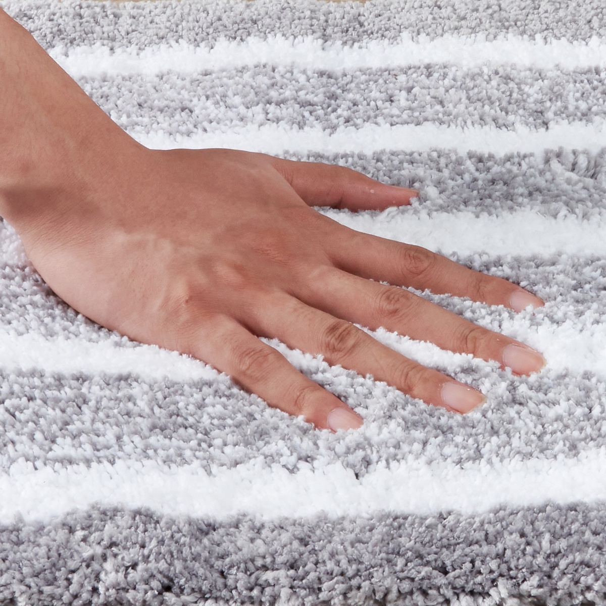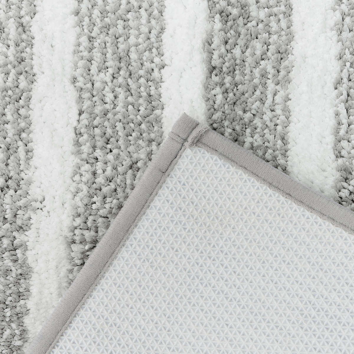 Elegantná kúpeľňová predložka v nadčasovom dizajne a sivobielej farebnej kombinácii bude perfektným doplnkom každej kúpeľne. Vďaka mäkučkému povrchu z kvalitného polyestru je príjemná na dotyk a poskytuje maximálne pohodlie pri každom kroku. Husté vlákna rýchlo absorbujú vodu a udržujú vašu podlahu suchú a čistú. Doprajte si to najlepšie po zaslúženom kúpeli alebo sprchovaní.Spodná strana predložky je opatrená praktickou protišmykovou vrstvou, ktorá zaisťuje bezpečné uchytenie na akomkoľvek type podlahy a zároveň zabraňuje nežiaducemu pošmyknutiu. Predložku je možné ľahko vyprať v práčke, odporúčame program na ručné pranie.