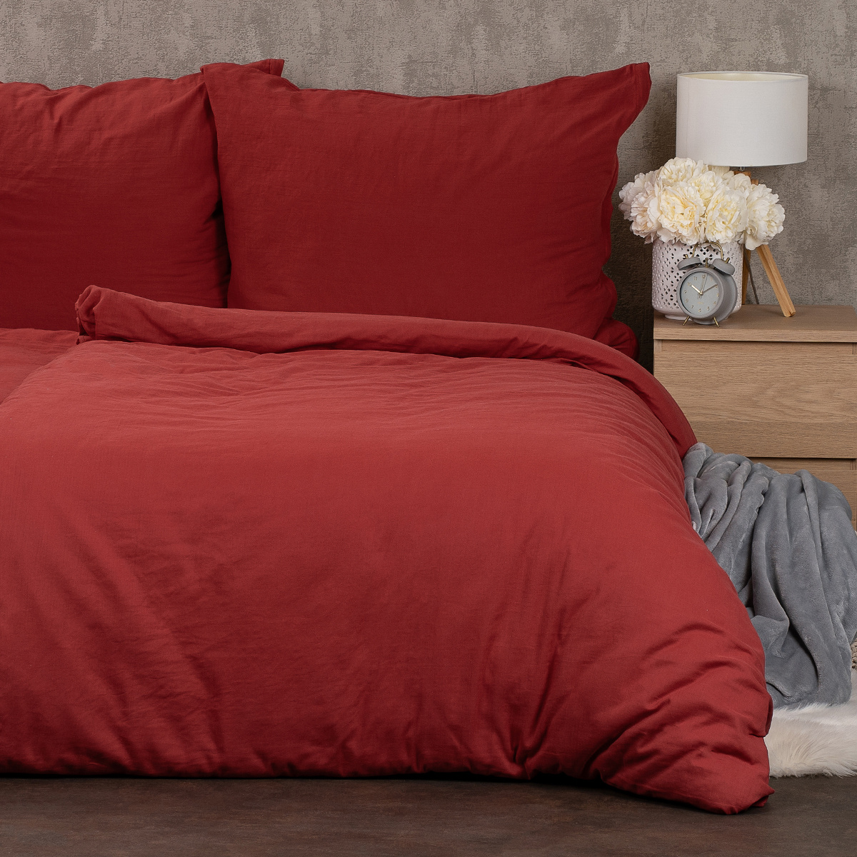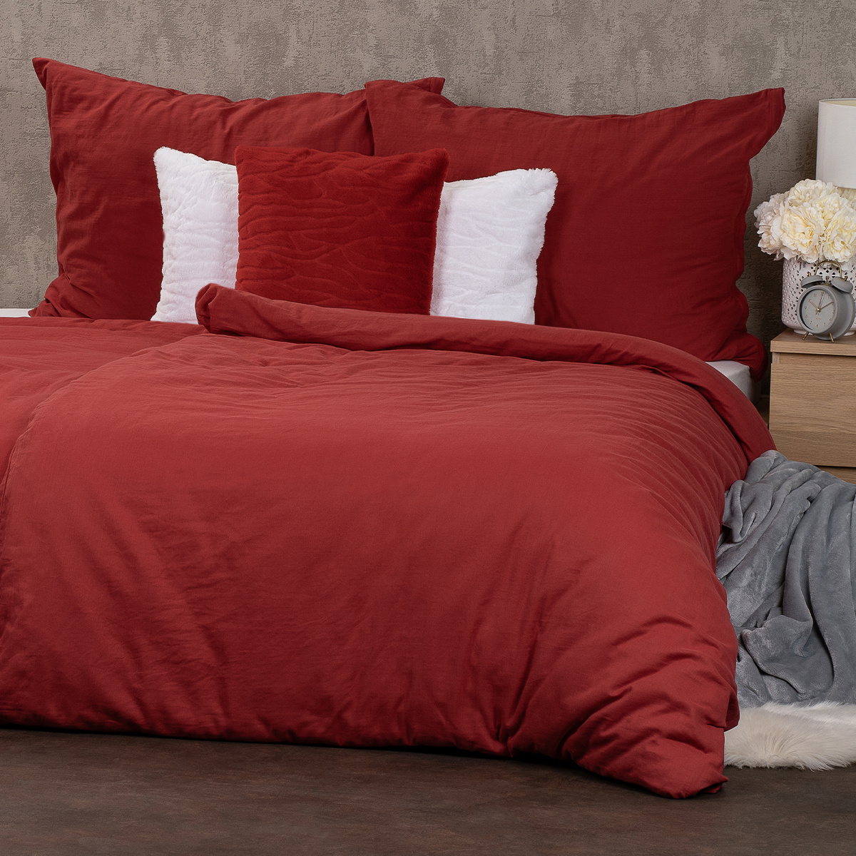 romantická červená farba dodáva spálni hrejivú atmosféru