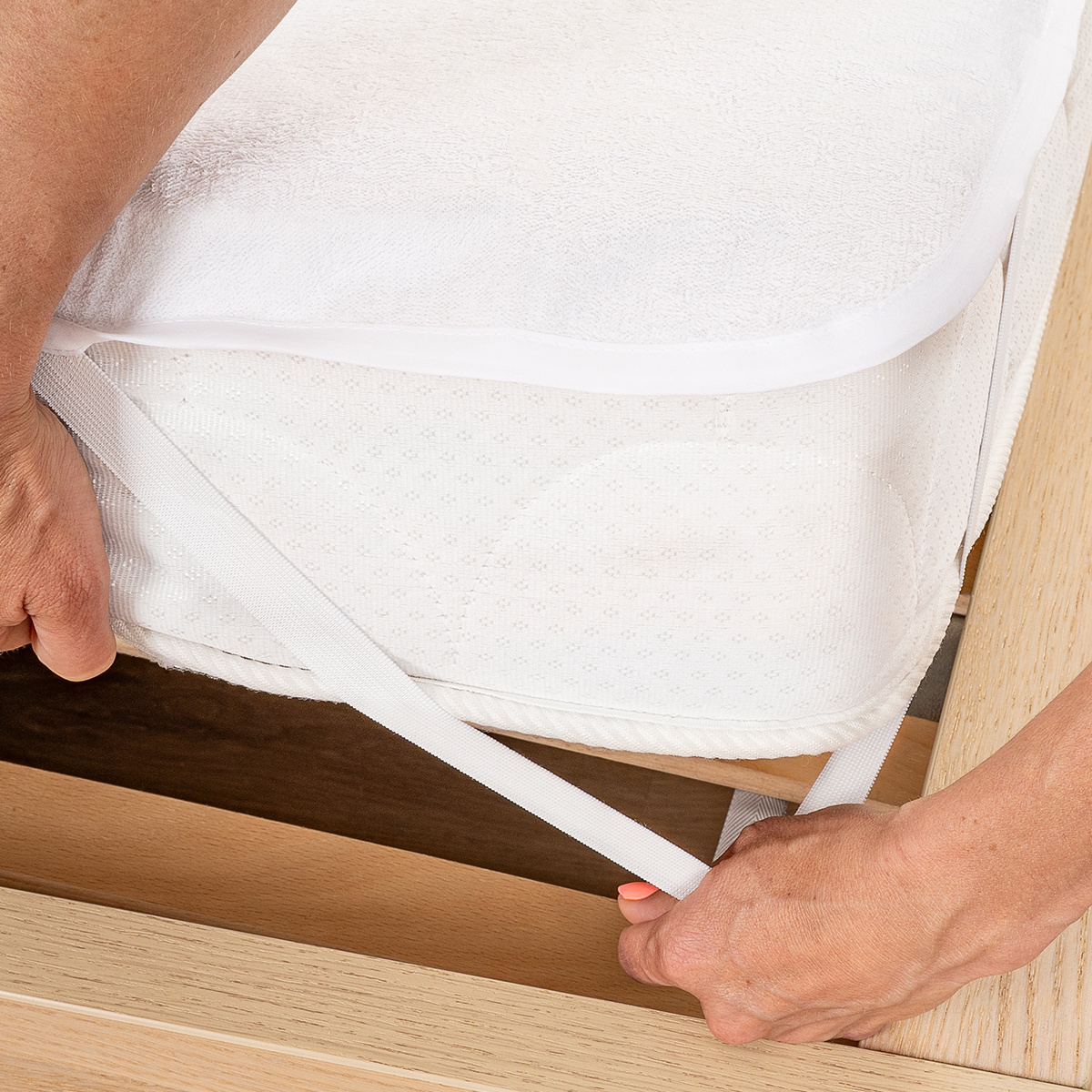 Vďaka praktickým elastickým pásikom v rohoch je možné chránič ľahko a rýchlo uchytiť k matracu tak, aby perfektne držal na svojom mieste aj pri častom pohybe. Udržovať ho v čistote je veľmi jednoduché – možno ho prať v práčke na 60 °C, čo zaručuje dôkladné odstránenie baktérií aj alergénov. Nie je však vhodný do sušičky a neodporúča sa žehliť, aby nedošlo k poškodeniu ochrannej vrstvy.