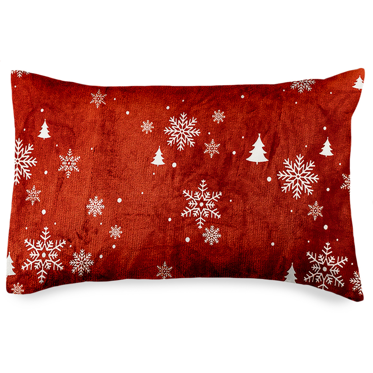 Štýlová obliečka na vankúšik z mäkučkého a hrejivého mikroflanelu. Jednoduchý motív vločiek a stromčekov navodí dokonalú atmosféru rozprávkovej zimy a veselé terakota-biele prevedenie oživí vašu spálňu alebo obývaciu izbu počas chladných zimných dní. Obliečka je obojstranná – z jednej strany vzor bielych vločiek na terakota podklade, z druhej strany naopak. Je vyrobená z hrejivého mikrovlákna – mikroflanel, má zapínanie na zips.