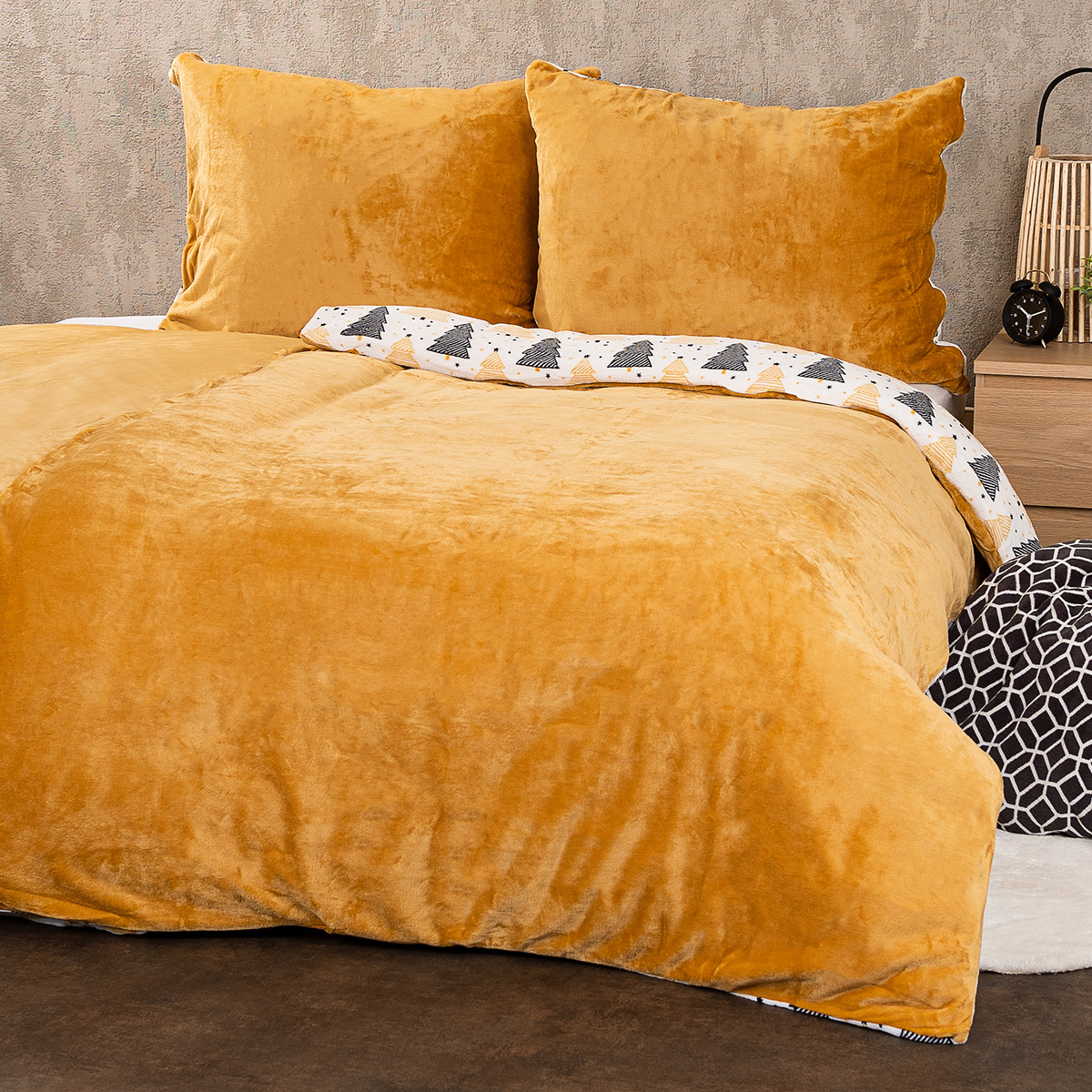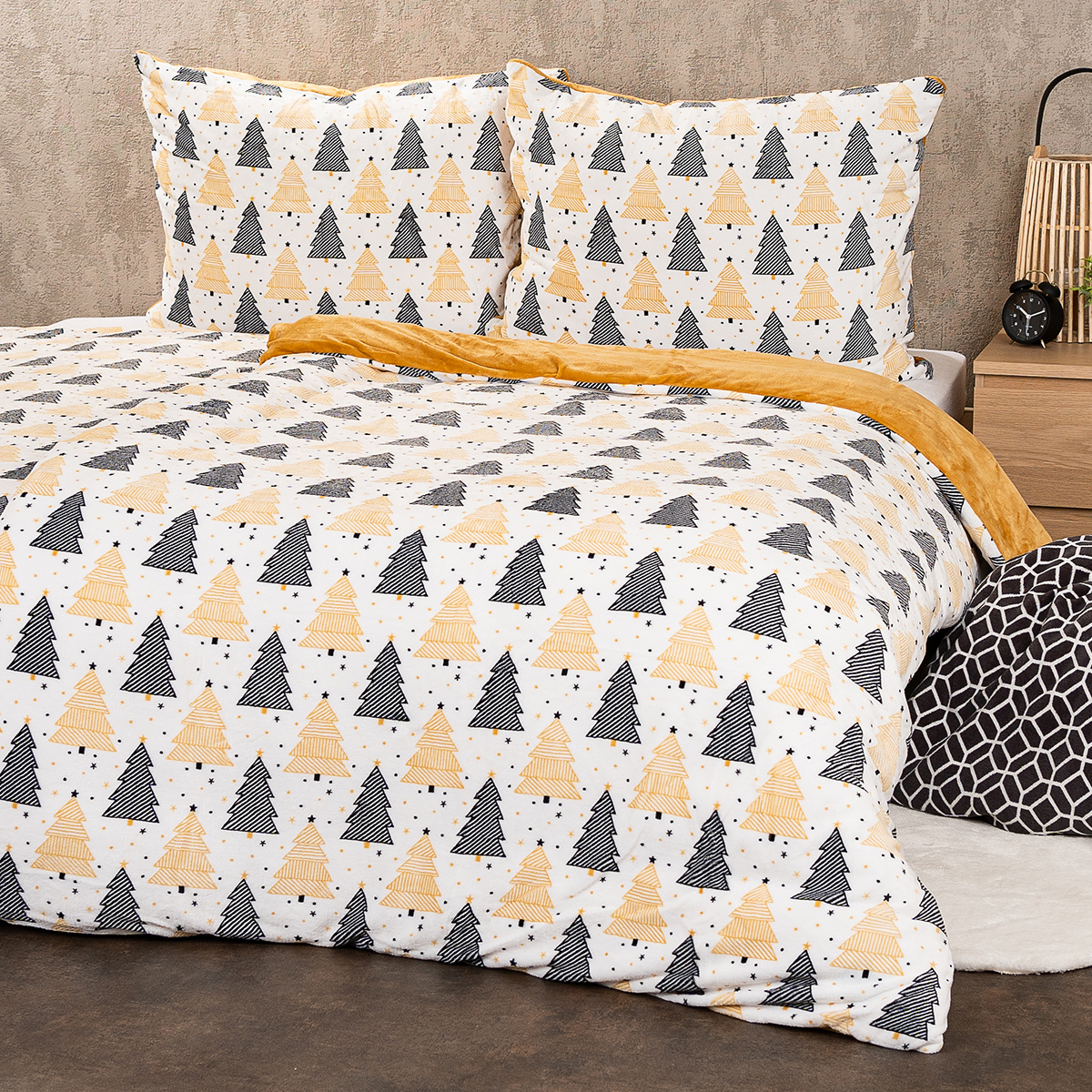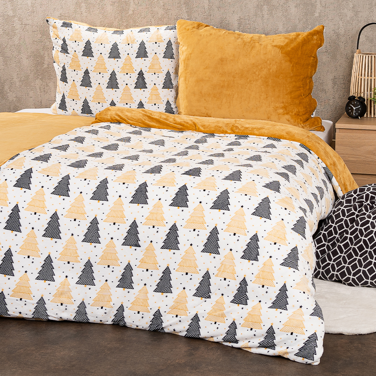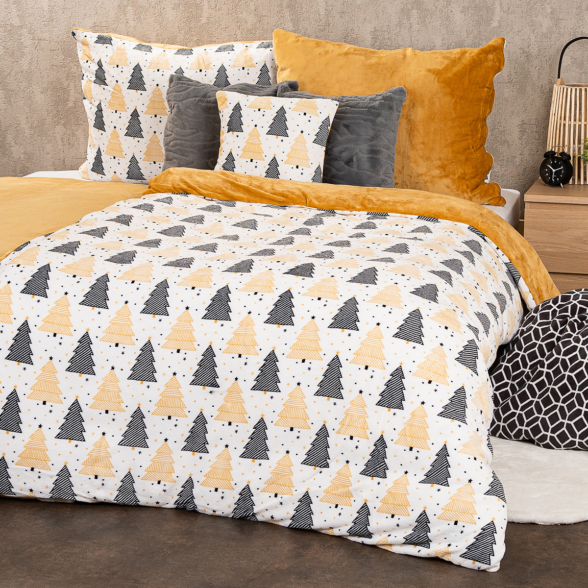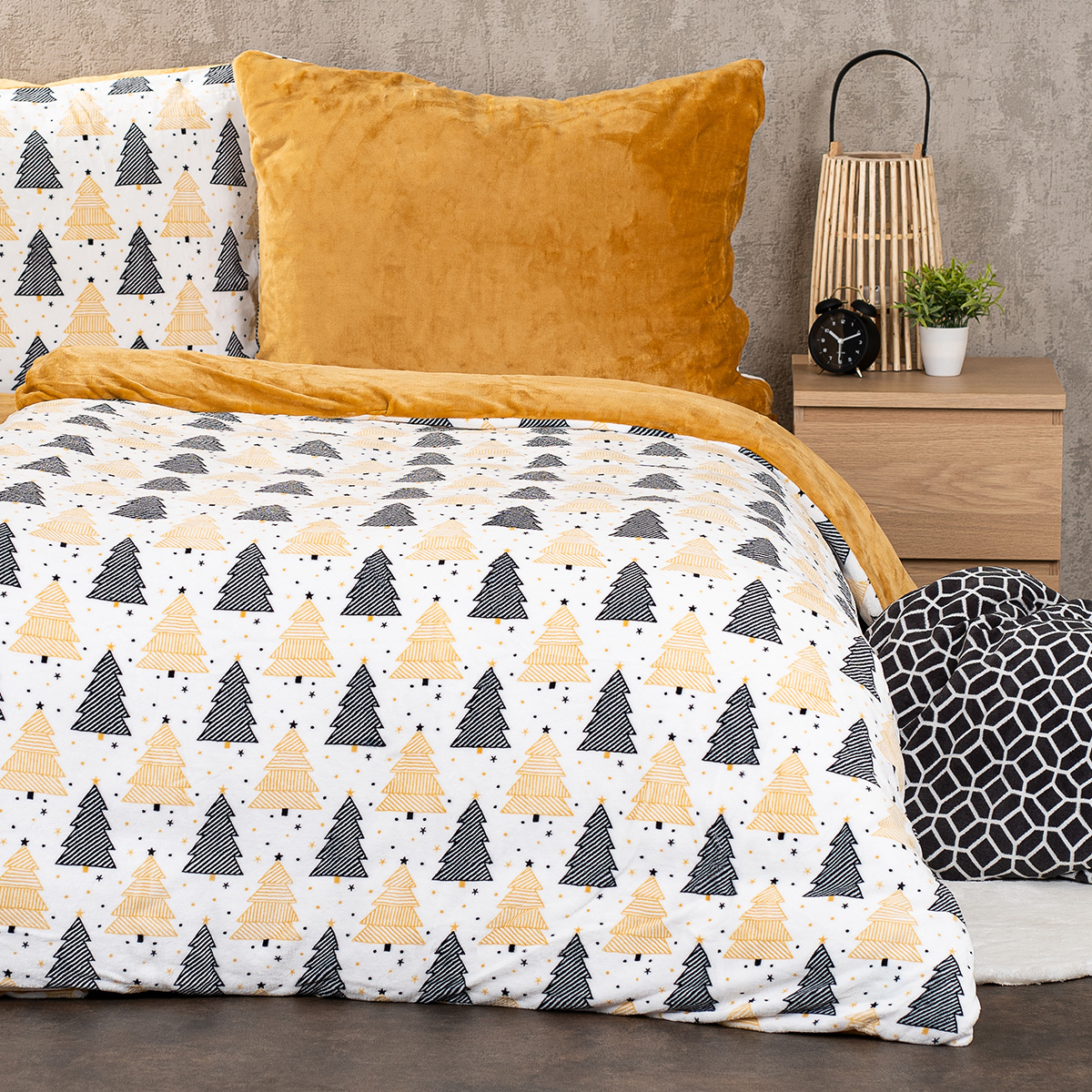 Vyčarujte vo svojej spálni čarovné ticho zimného lesa. Mikroflanelové obliečky s jednoduchým zimným motívom v škandinávskom dizajne budú skvelým spoločníkom do chladných nocí. Obliečky sú obojstranné – z jednej strany jednoduché vianočné stromčeky na bielom podklade, ktoré navodia kúzlo zasnežených plání, druhá strana je jednofarebná v odtieni slávnostnej béžovozlatej. Sú krásne mäkké a hrejivé – ideálny spoločník pre malých i veľkých zmrzlíkov. Mikroflanel rýchlo schne, nemusí sa žehliť ani sa nekrčí a je šetrný aj k citlivej pokožke.Spoznajte kúzlo kolekcie bytového textilu Nordic, ktorá osobitým spôsobom čerpá inšpiráciu z obľúbeného škandinávskeho dizajnu a dodá vášmu domovu harmóniu severského bývania. Kolekcia Nordic ponúka pre každého niečo: jemné pastelové farby, neutrálne farebné ladenie, prírodné a zvieracie motívy či tradičné folklórne vzory.Súprava obsahuje: