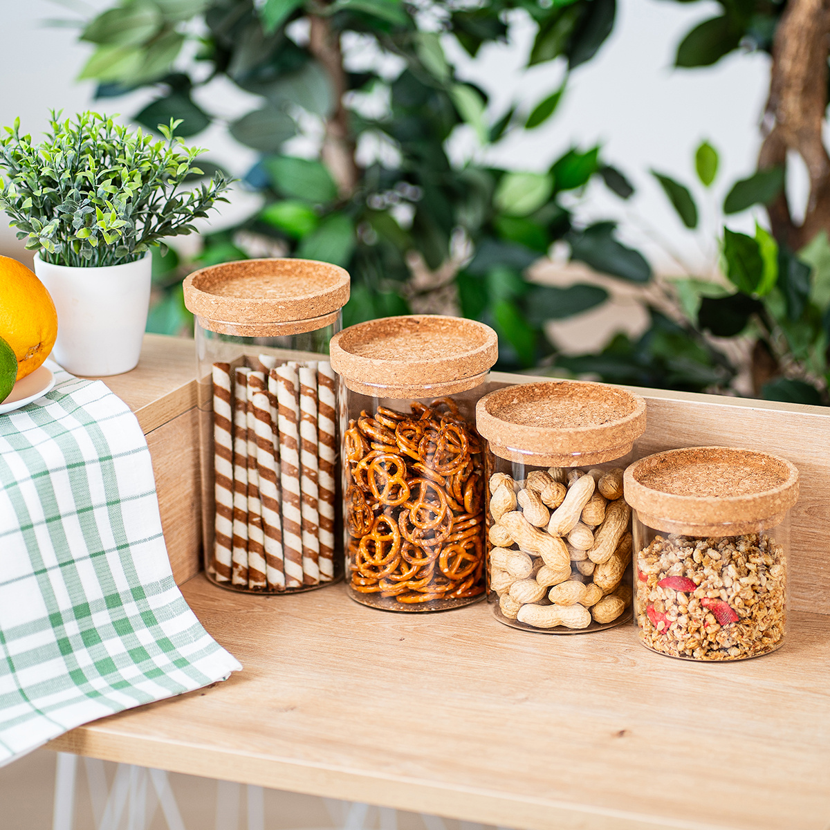 Udržujte svoje potraviny vždy čerstvé a dokonale usporiadané vďaka praktickej sklenenej dóze s korkovým viečkom. Jednoduchý a elegantný dizajn dodá vašej kuchyni jedinečný štýl, s ktorým bude varenie a príprava jedál jedna radosť. Navyše budete mať skvelý prehľad kde čo máte a či vám nejaké potraviny nedochádzajú. Prírodné korkové viečko prirodzene tesní a chráni vaše potraviny pred vlhkosťou a prachom.Dózy Cork sú vhodné na skladovanie cestovín, kávy, čaju, múky, cukru a soli alebo napríklad sušienok a sladkostí. Okrem toho sa hodia aj ako krásny doplnok do interiéru – môžete ich napríklad naplniť mušľami z dovolenky, alebo ich využiť pre akékoľvek kreatívne tvorenie. Skrátka každá nájde svoje uplatnenie, fantázii sa medze nekladú.Výhody: