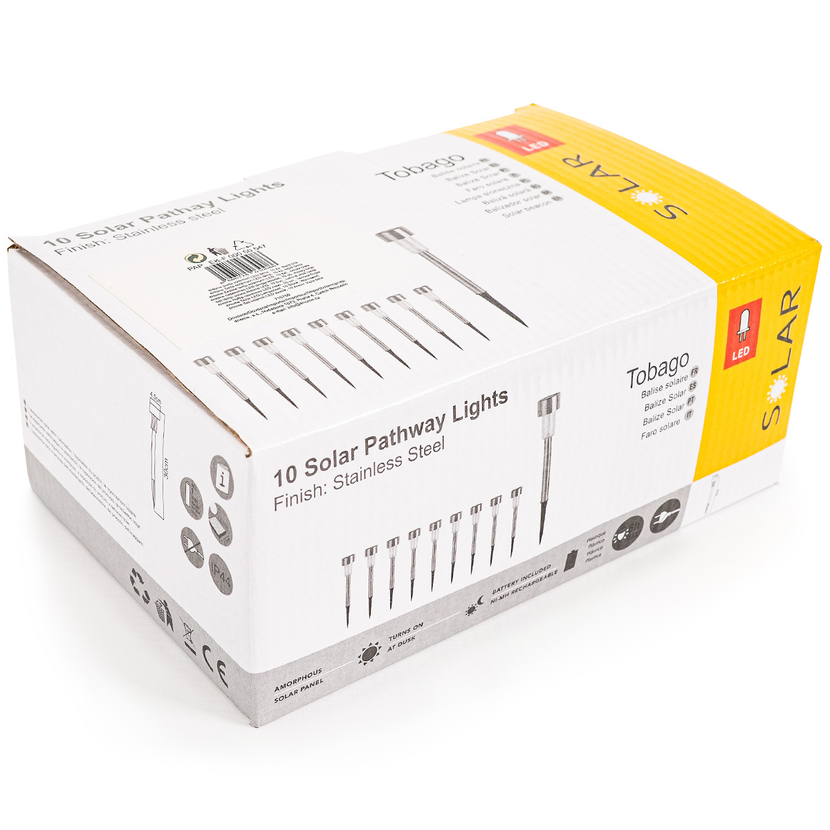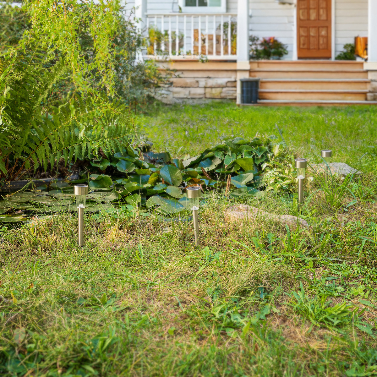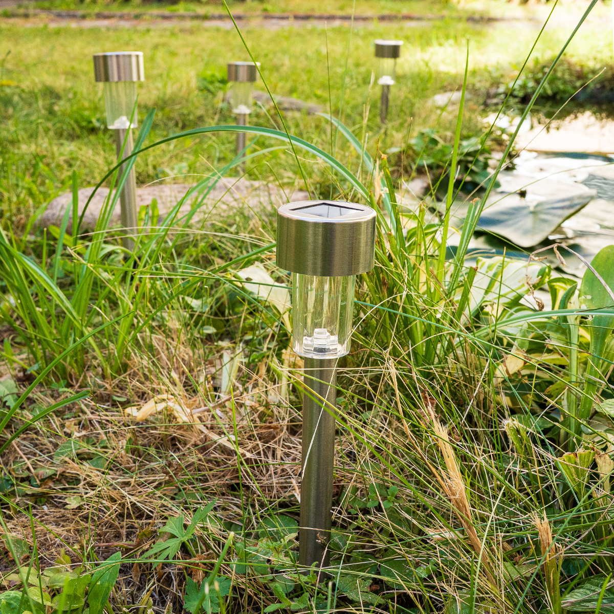 Rozžiarte svoju záhradu, chodníky alebo terasu pomocou praktickej súpravy 10 solárnych LED lámp s príjemným teplým odtieňom svetla. Vďaka jednoduchému a elegantnému dizajnu z nehrdz. ocele a číreho plastu zapadnú tieto lampy do akéhokoľvek exteriéru. Ideálne pre úsporné osvetlenie ciest, záhonov, vchodov aj dekoratívnych prvkov na záhrade.Lampy sa cez deň nabíjajú zo slnečnej energie a po zotmení sa automaticky rozsvietia. Nepotrebujete žiadne káble, elektrinu ani zložité zapojenie – stačí ich pomocou praktického bodca zapichnúť do zeme a o zvyšok sa postarajú samy. Teplé svetlo navodzuje útulnú a pokojnú atmosféru, ideálnu na večerné posedenie alebo bezpečný pohyb po záhrade.Technické parametre a špecifikácie: