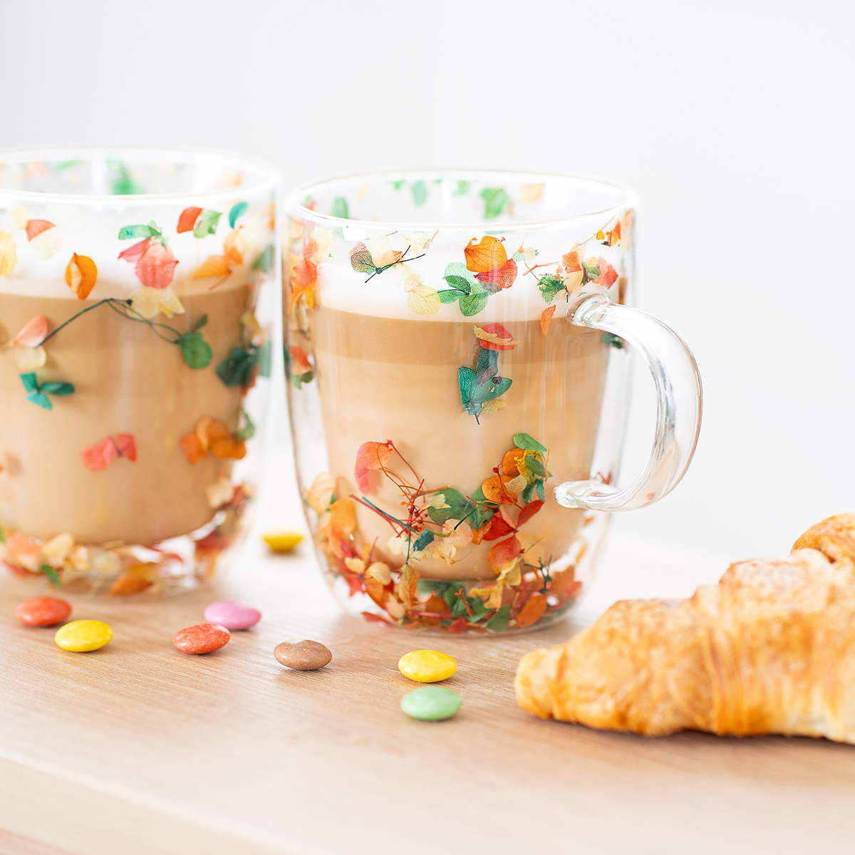 Premeňte každodenné pitie kávy či čaju na estetický zážitok s týmito jedinečnými termo pohármi Bloom. Medzipriestor dvojstenného skla je vyplnený sušenými kvietkami, ktoré vnesú do každodenného stolovania farebnú hravosť a eleganciu. Vďaka objemu 400 ml sú ideálne na čaj, latte, horúcu čokoládu aj osviežujúce limonády. Hodí sa aj ako originálny darček pre každého milovníka kávy či čaju.