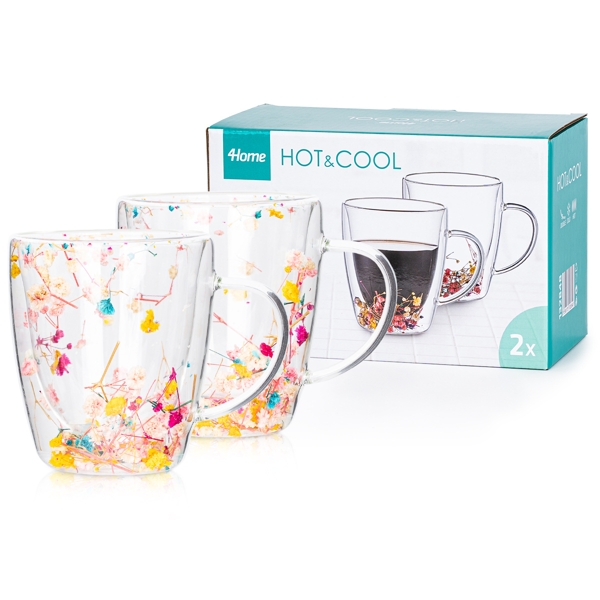 Termo pohár Floral Hot&Cool od značky 4Home vás na prvý pohľad očarí jedinečným vzhľadom, ktorý v sebe spája eleganciu, nehu a originálne spracovanie. Tieto poháre nie sú len praktickým doplnkom vašej kuchyne, ale aj malým umeleckým dielom – vo vnútri dvojitej steny z borosilikátového skla sa nachádza jemná kompozícia farebných sušených kvetov, ktorá sa v každom kuse mierne líši a dodáva každému poháru úplne individuálny charakter. Či už ich použijete na čaj, kávu alebo osviežujúci nápoj, vždy vytvorí krásny vizuálny aj chuťový zážitok.