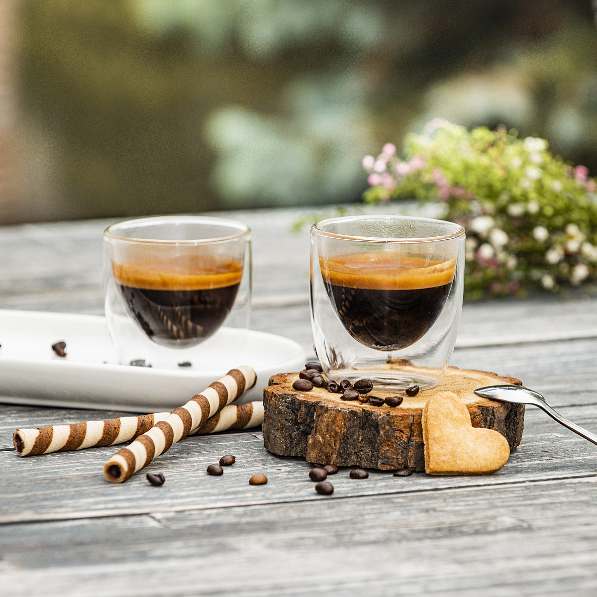 Tieto originálne poháre v modernom dizajne vám zaistia dokonalý zážitok z lahodnej kávy. Vhodné sú predovšetkým na prípravu kávy espresso a lungo, ale hodia sa aj pre podávanie ostatných teplých a studených nápojov.Sú ručne vyrábané z ľahkého žiaruvzdorného borosilikátového skla s dvojitou stenou, ktorá vďaka vytvorenému vákuu dokáže udržať ideálnu teplotu nápoja dlhú dobu. Vďaka termoizolačným vlastnostiam dvojstenného vákuového skla zostáva aj pri použití horúceho nápoja vonkajšia vrstva pohára chladná a nedochádza tak k nechcenému spáleniu.Výhodou borosilikátového skla oproti sklu tradičnému je jeho vysoká odolnosť voči vysokým a nízkym teplotám, mechanickému poškodeniu a pôsobeniu chemikálií.Výhody: