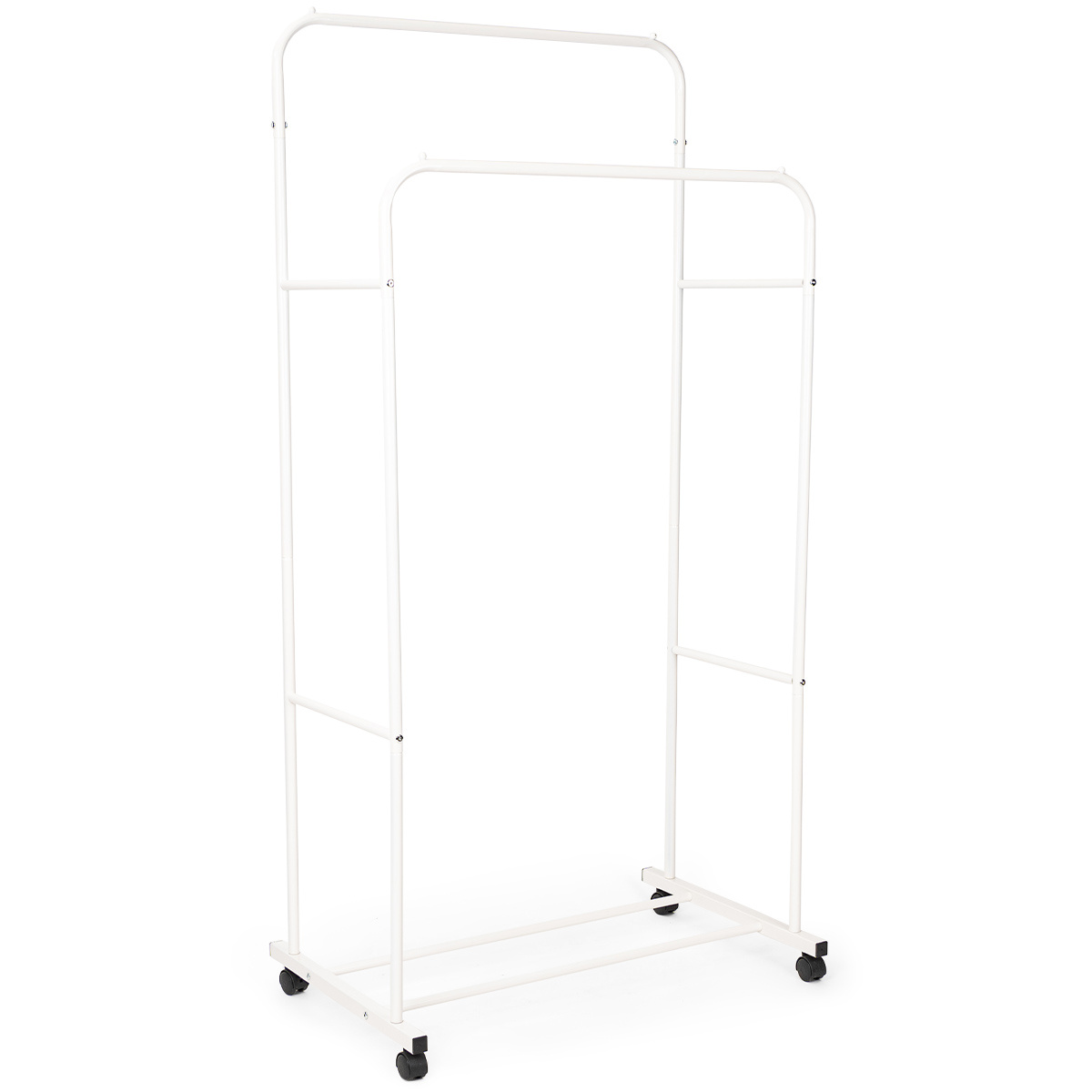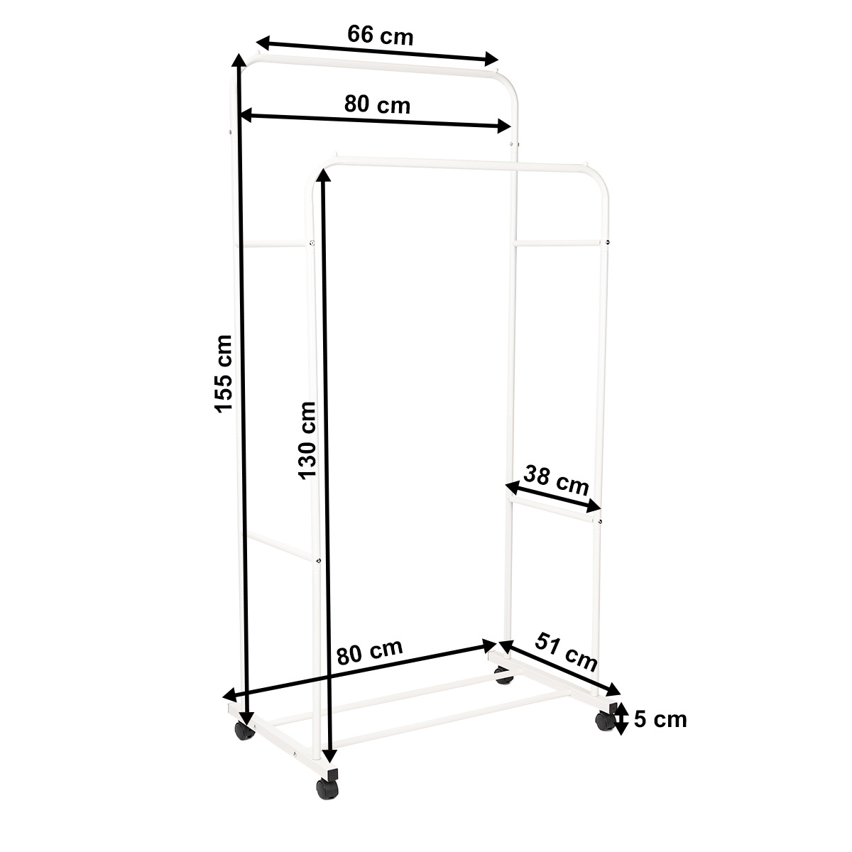 Vešiak na oblečenie Garment od značky 4Home je praktickým a štýlovým pomocníkom pre každého, kto hľadá spoľahlivé a elegantné riešenie na uloženie odevov. Už pri prvom pohľade zaujme svojim čistým bielym dizajnom, ktorý sa hodí do každej spálne, šatne aj chodby. Jeho konštrukcia spája jednoduchosť a funkčnosť v jeden premyslený celok, vďaka čomu sa stane nepostrádateľnou súčasťou vášho domova.Základom vešiaku je dvojradová konštrukcia na zavesenie odevov, ktorá umožňuje maximálne využiť priestor a pritom zachovať prehľadnosť. Kratšia predná tyč je ideálna pre kratšie kusy odevov ako sú košele, saká či blúzky, zatiaľ čo zadná vyššia tyč skvele poslúži pre dlhé kabáty, šaty alebo plášte. Vďaka šírke 80 cm ponúka dostatok miesta na každodenné aj sezónne oblečenie.V spodnej časti sa nachádza praktická polica tvorená dvojicou kovových tyčí, ktorá ponúka ďalší úložný priestor. Je ideálny na uloženie topánok, krabíc s doplnkami alebo menších úložných košíkov, ktoré pomôžu udržať poriadok. Celková nosnosť 22 kg zaisťuje, že vešiak bez problémov unesie aj plne naložený šatník.Oceníte aj kolieska pre jednoduchú manipuláciu, vďaka ktorým môžete vešiak kedykoľvek jednoducho presunúť tam, kde ho práve potrebujete. Dve z koliesok sú navyše opatrené brzdou, ktorá zaistí maximálnu stabilitu, akonáhle vešiak umiestnite na svoje miesto.Výhodou je aj rýchla montáž, ktorú zvládnete v priebehu niekoľkých minút. Vešiak je dodávaný v demontovanom stave a vďaka priloženému návodu ho bez problémov zostavíte bez nutnosti špeciálneho náradia. Kovová konštrukcia zaručuje dlhú životnosť a odolnosť voči každodennému používaniu, zatiaľ čo nízka hmotnosť iba 2,9 kg zaisťuje ľahkú manipuláciu.Hlavné výhody produktu: