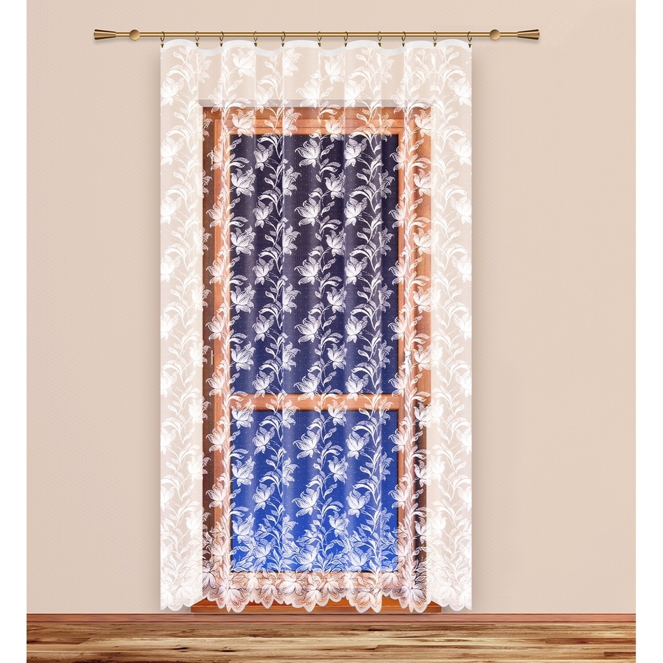 Nápadné kvety ľalií, ktoré dodajú šmrnc každej miestnosti v kombinácii jednoduchého príjemne pôsobiaceho vzoru zakončeného nenápadným lemom. Záclona sa stane neoddeliteľnou súčasťou interiéru a zaručene zútulní každú miestnosť. Vyrobené z kvalitného materiálu. Vďaka pevnému okraju možno záclonu zavesiť na žabky a rovno ju zavesiť na okno. Riasiaca stuha nie je súčasťou.