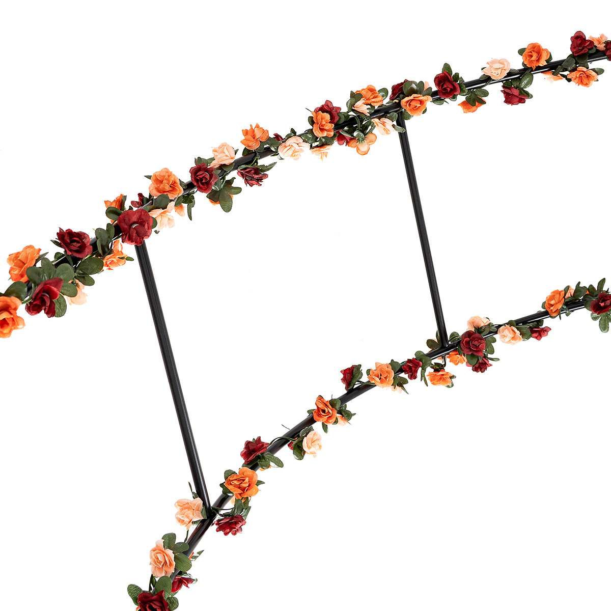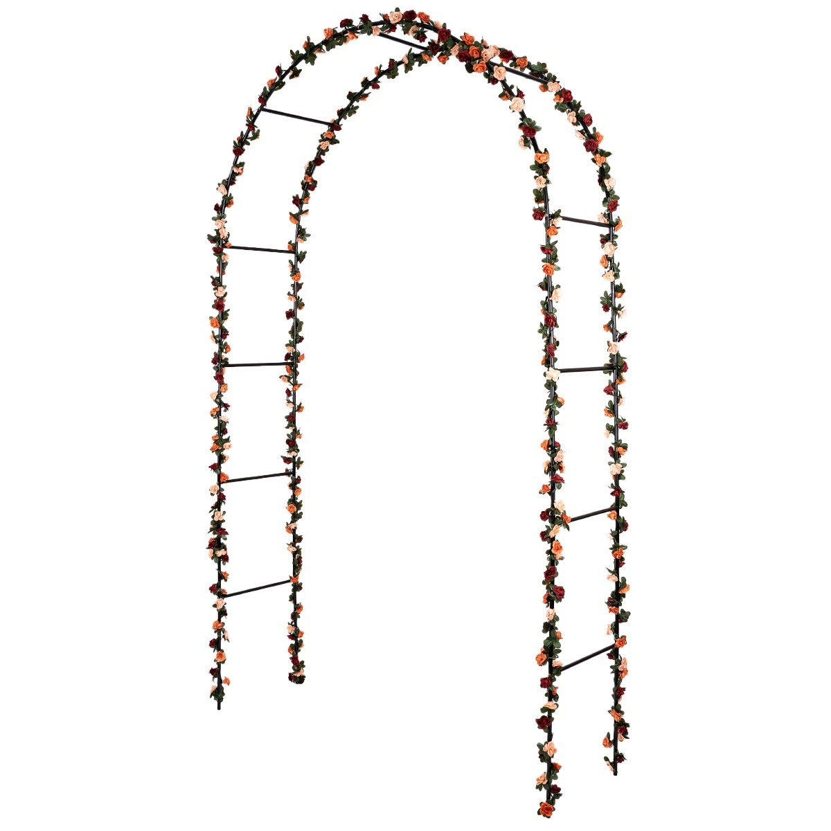 Vytvorte vo svojej záhrade krásnu bránu z kvitnúcich kvetov alebo popínavých rastlín. Záhradný oblúk je pútavý doplnok, ktorý dodáva vašej záhrade štýl, štruktúru a romantickú atmosféru. Je ideálny pre ruže, brečtan, plamienok, fazuľu alebo okrasné viniče. Nech už ho umiestnite pri vchode do záhrady, vedľa pergoly alebo do kvetinového záhonu, rýchlo sa stane dominantným prvkom vašej záhrady.Konštrukcia je vyrobená z ľahkého, ale pevného kovu s matným povrchom. Vďaka jasným pokynom a jednoduchému systému montáže ju môžete zložiť za okamih. Skvelé riešenie nielen pre okrasné záhrady, ale aj pre špeciálne príležitosti, ako sú svadby, oslavy alebo fotenie.Priemer rúrky: 1,5 cmVzdialenosť medzi jednotlivými tyčami: cca 42 cmRozmery zloženej podpory (V x Š x H): 240 x 140 x 38 cmRozmery balenia (V x Š x H): 55 x 20 x 5 cm