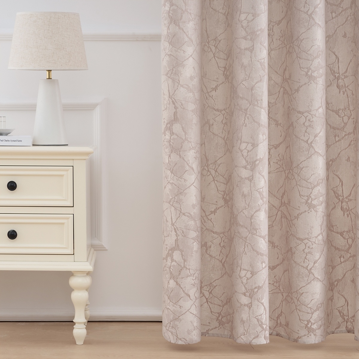 Elegantný zatemňovací záves Marble v jemnej béžovej farbe s decentným florálnym vzorom dodá vášmu interiéru prírodný a harmonický vzhľad. Materiál je kvalitný, s jemnou štruktúrou, ktorá krásne splýva a vytvára vkusné vlny.Vďaka kovovým krúžkom je zavesenie na garnižu ľahké a rýchle. Tento záves nielen zútulní váš domov, ale tiež poskytne súkromie a čiastočne tlmí svetlo bez toho, aby priestor pôsobil ťažko.Vlastnosti a parametre produktu: