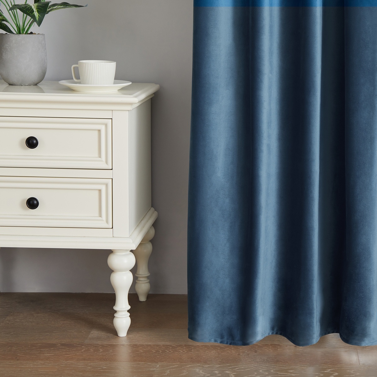 Dolaďte si interiér k dokonalosti so štýlovým zatemňovacím závesom Paris. Jednoduché jednofarebné prevedenie v upokojujúcej tmavomodrej farbe dodá harmonickú atmosféru vášmu domovu. Kvalitný materiál s hebučkým zamatovým povrchom je skvelý na jednoduchú údržbu aj veľmi príjemný na dotyk.Zatemňovacie prevedenie s vysokým zatienením 80-90 % zabráni prenikaniu slnečného svitu či rušivého nočného svetla z ulice a poskytne perfektné súkromie pred zvedavými pohľadmi zvonku. Súčasťou balenia je 8 kovových krúžkov so žabkami v bielej farbe pre ľahké zavesenie na záclonovú tyč. Priemer krúžku vonkajší: 38 mm, priemer krúžku vnútorný: 32 mm.