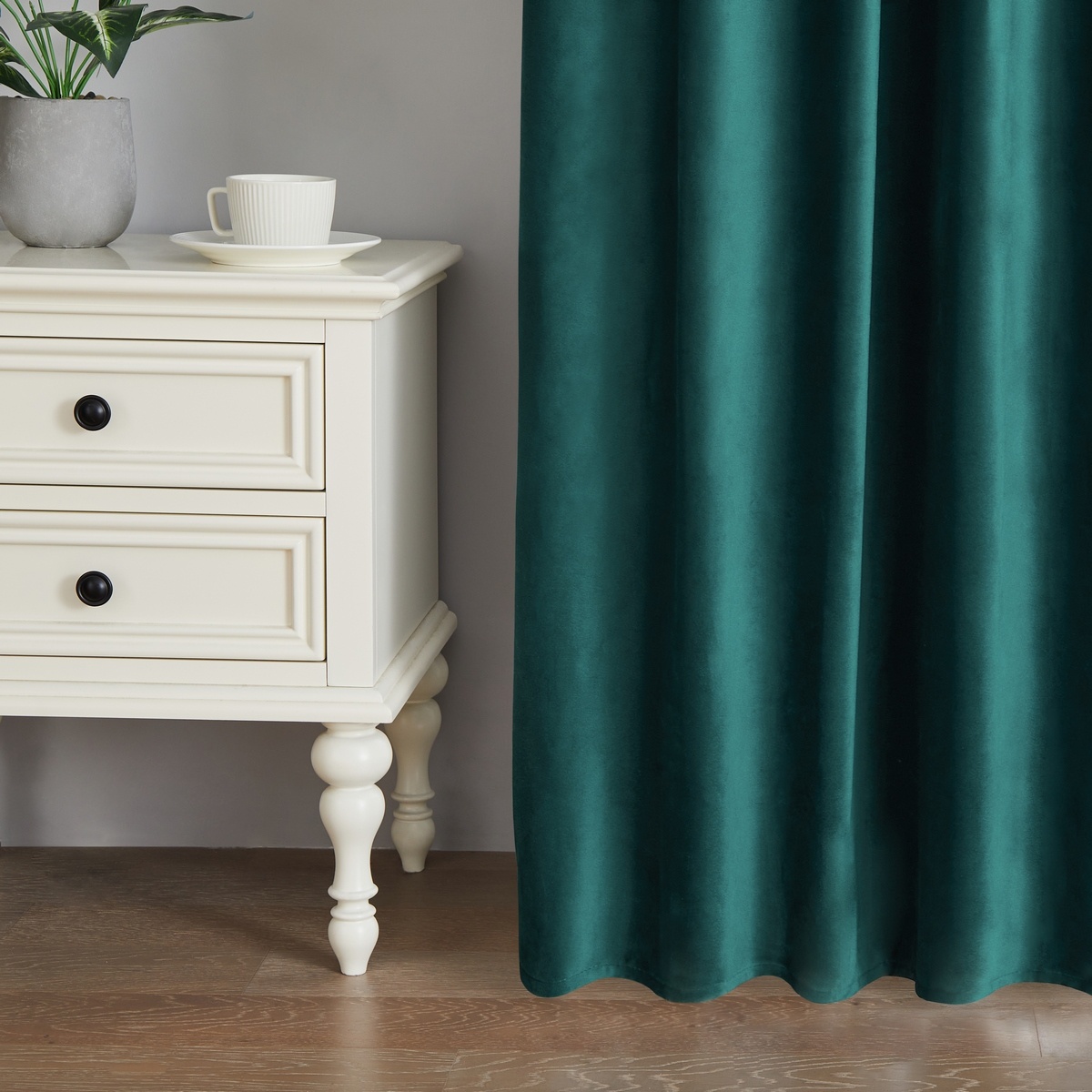 Doprajte svojmu domovu nádych elegancie so zatemňovacím závesom Paris. Jednoduché jednofarebné prevedenie v luxusnej smaragdovo zelenej zaručene upúta pozornosť a prinesie netradičné oživenie každej miestnosti. Kvalitný materiál s hebučkým zamatovým povrchom je skvelý na jednoduchú údržbu aj veľmi príjemný na dotyk.Zatemňovacie prevedenie s vysokým zatienením 80-90 % zabráni prenikaniu slnečného svitu či rušivého nočného svetla z ulice a poskytne perfektné súkromie pred zvedavými pohľadmi zvonku. Súčasťou balenia je 8 kovových krúžkov so žabkami v bielej farbe pre ľahké zavesenie na záclonovú tyč. Priemer krúžku vonkajší: 38 mm, priemer krúžku vnútorný: 32 mm.