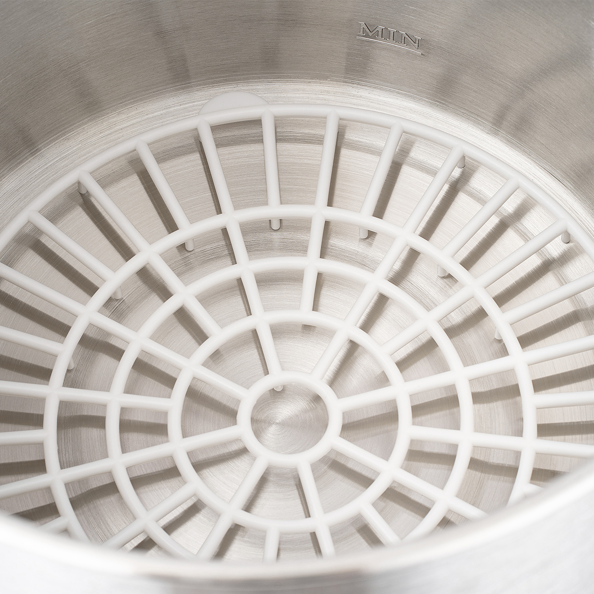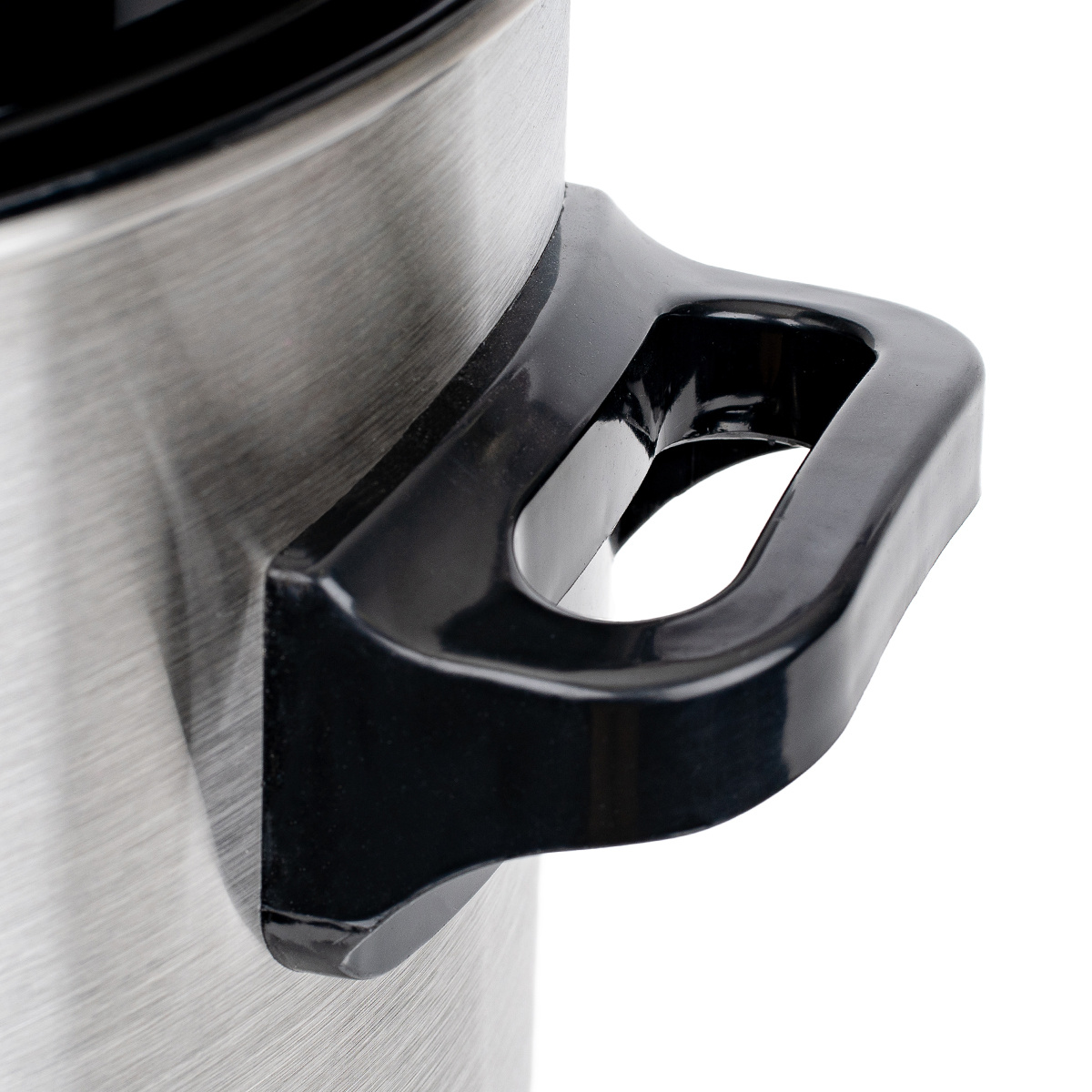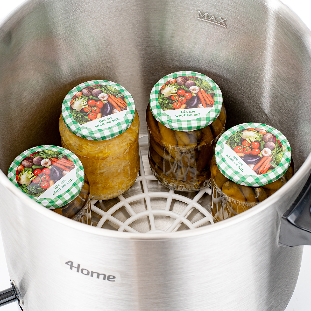 Telo hrnca je vyrobené z kvalitnej matnej nehrdz. ocele, ktorá je nielen odolná voči korózii, ale tiež sa ľahko čistí a skvele vyzerá. Hrniec je vybavený praktickými plastovými držadlami, ktoré vďaka tepelne izolačnému prevedeniu zaisťujú bezpečnú manipuláciu aj pri vysokých teplotách. Vo vnútri nádoby sa nachádza plastová mriežka, ktorá chráni poháre počas zavárania a umožňuje rovnomerné rozloženie tepla. Celková kapacita je až 22 pohárov po 720 ml alebo 34 pohárov po 370 ml, čo z neho robí výkonný nástroj aj pre väčšie domácnosti.