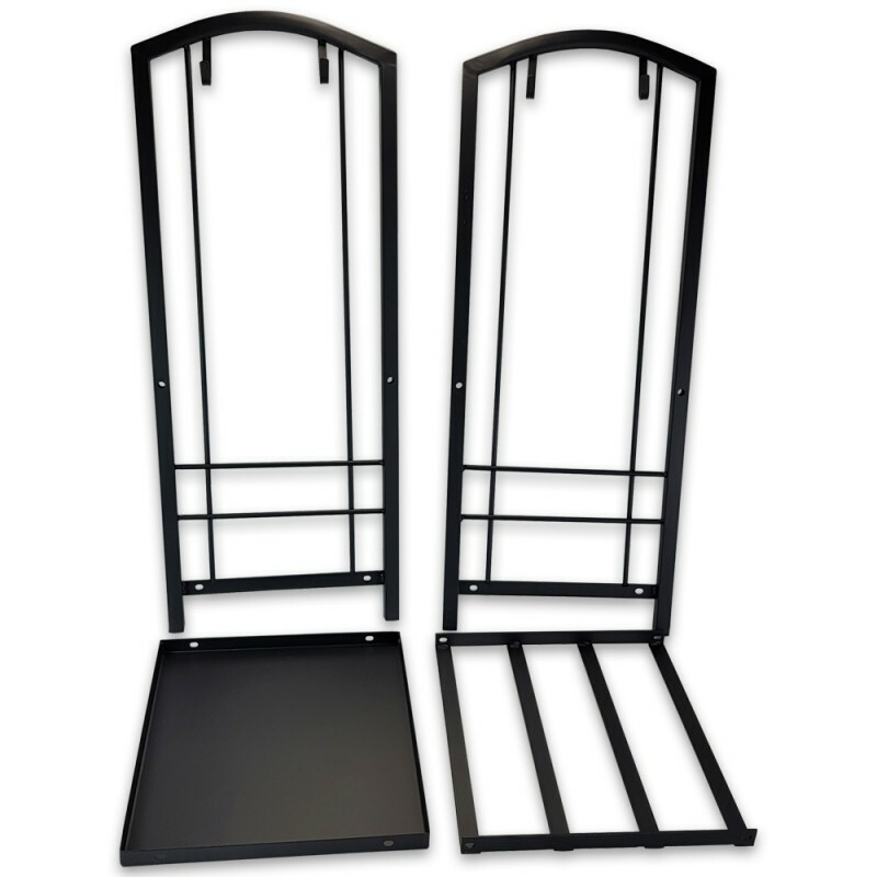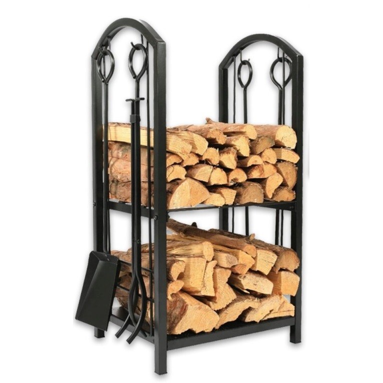 Praktický dvojposchodový stojan na krbové drevo bol navrhnutý s ohľadom na užívateľský komfort. Má dve priestranné police, ktoré umožňujú uskladnenie paliva. Na bokoch je stojan doplnený háčikmi na náradie, ktoré je dodávané spoločne so stojanom. Kovové spracovanie konštrukcie je odolné a jej maximálna nosnosť je 20 kg. Matný povrch dodáva elegantný vzhľad a hodí sa k rôznym štýlom interiéru.Balenie obsahuje: