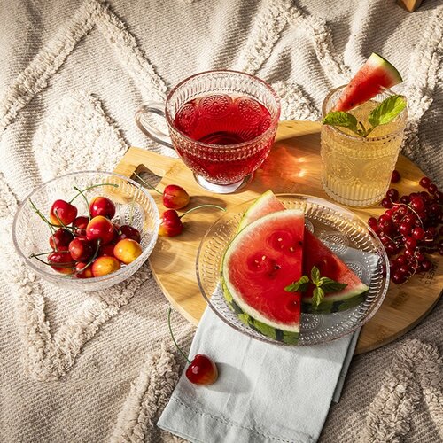 Hľadáte originálny kúsok do svojej zbierky riadu, na ktorý by ste mohli naservírovať ako ovocie, tak napríklad dokonalé sobotné raňajky? Kolekcia skleneného riadu Daisy je kombináciou krásy, jemnosti a funkčnosti, vďaka ktorej sa stane servírovanie dezertov jedinečným zážitkom. Každý prvok tejto kolekcie bol starostlivo navrhnutý tak, aby zaujal svojim vzhľadom a kvalitou spracovania.