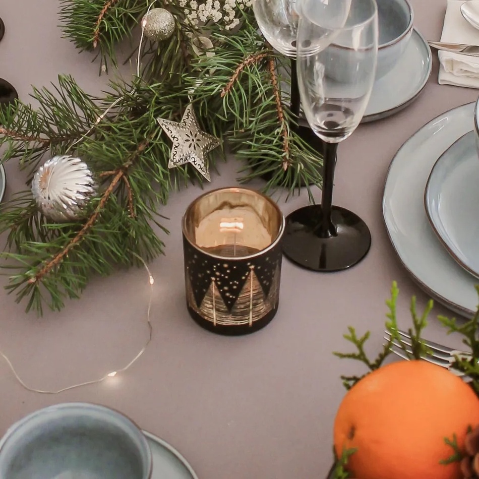 Altom Sklenený svietnik Golden Christmas tree čierna, pr. 9 x 10 cm