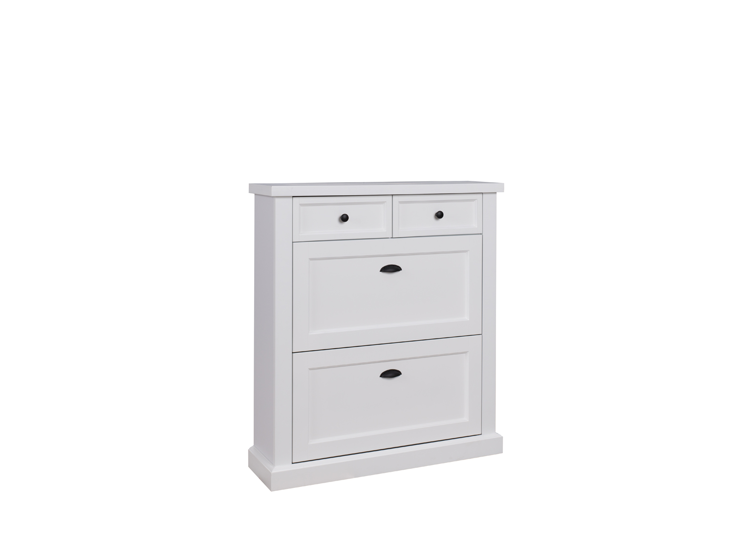 Neodolateľná zostava do predsiene GALINEO v provensálskom štýle. Očarujúca kolekcia Galineo v bielej farbe zaisťuje optické zväčšenie priestoru. Preto je vhodná aj do menších predsieni. Kolekcia Galineo obsahuje viacero prvkov, ktoré Vám ponúkajú možnosť vytvorenia si dokonalej predsiene. Celú kolekciu dopĺňajú elegantné čierne kovové úchyty. Botník na topánky GALINEO P01 ma dve priestranné zásuvky a dve výklopné poličky na topánky.