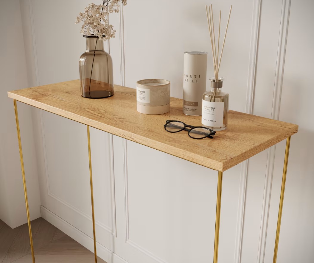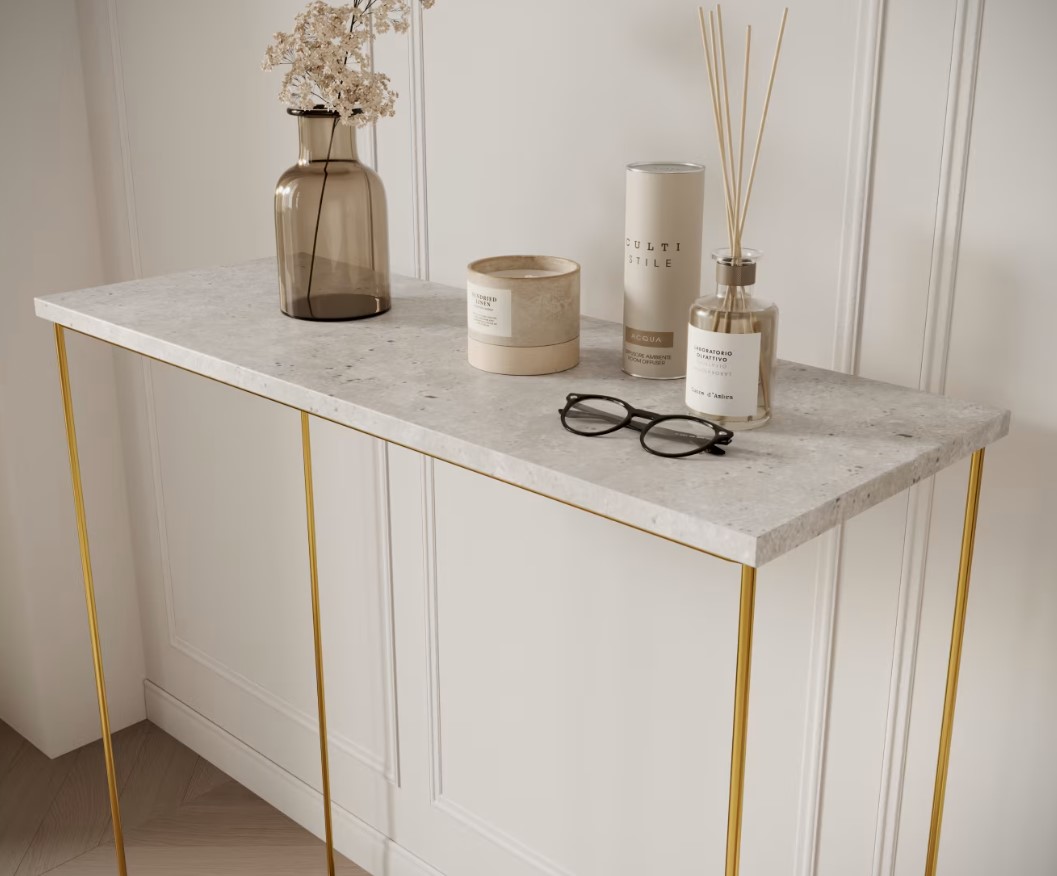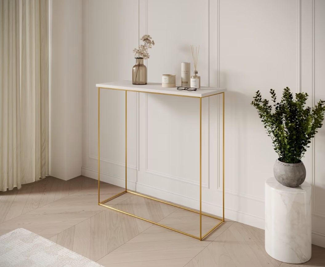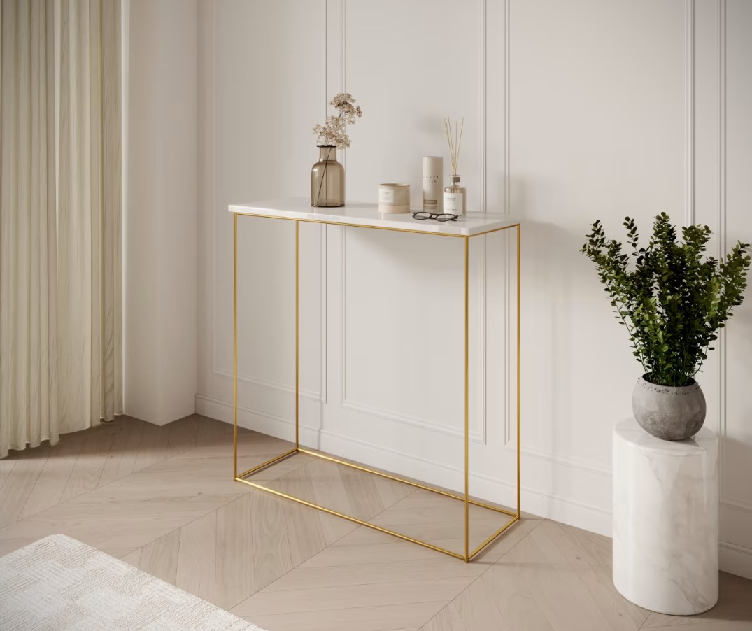 Príručný stolík MILAN | zlaté nohy predstavuje dokonalú kombináciu moderného dizajnu a praktickosti. Vďaka svojmu elegantnému vzhľadu a funkčnosti je ideálnou voľbou pre tých, ktorí chcú do svojho interiéru vniesť osobitý štýl. Investujte do nábytku, ktorý harmonicky spája estetiku s využiteľnosťou a vytvára priestor, kde sa budete cítiť výnimočne. Príručný stolík má možnosť výberu v niekoľkých farebných prevedeniach hornej dosky. Vyberte si ten správny stolík aj do malej miestnosti.
