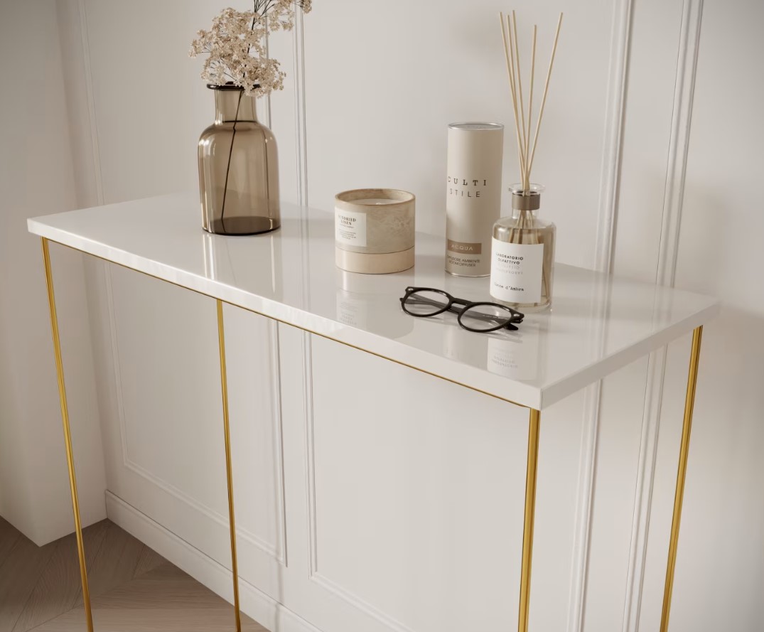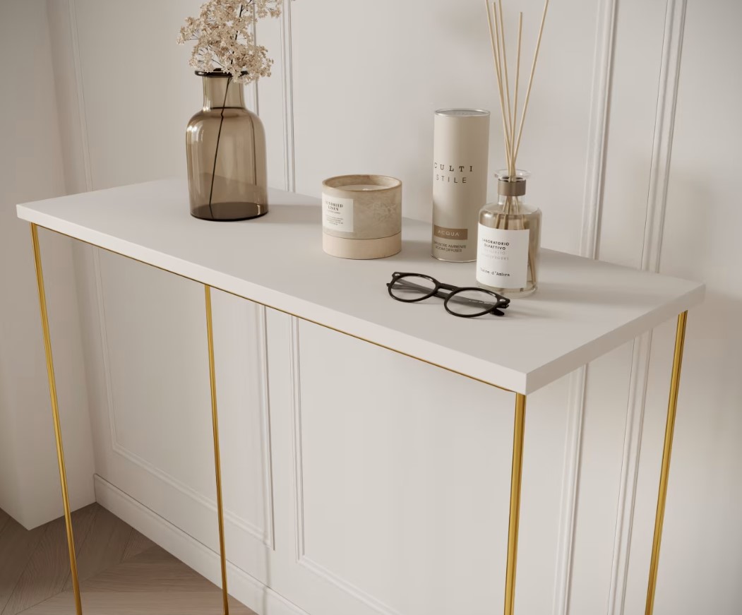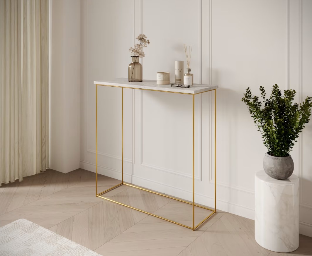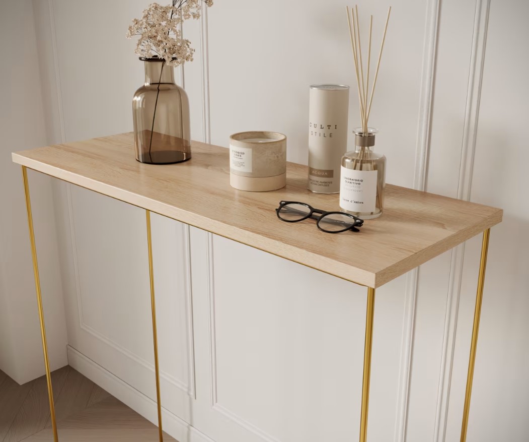 Príručný stolík MILAN | zlaté nohy predstavuje dokonalú kombináciu moderného dizajnu a praktickosti. Vďaka svojmu elegantnému vzhľadu a funkčnosti je ideálnou voľbou pre tých, ktorí chcú do svojho interiéru vniesť osobitý štýl. Investujte do nábytku, ktorý harmonicky spája estetiku s využiteľnosťou a vytvára priestor, kde sa budete cítiť výnimočne. Príručný stolík má možnosť výberu v niekoľkých farebných prevedeniach hornej dosky. Vyberte si ten správny stolík aj do malej miestnosti.