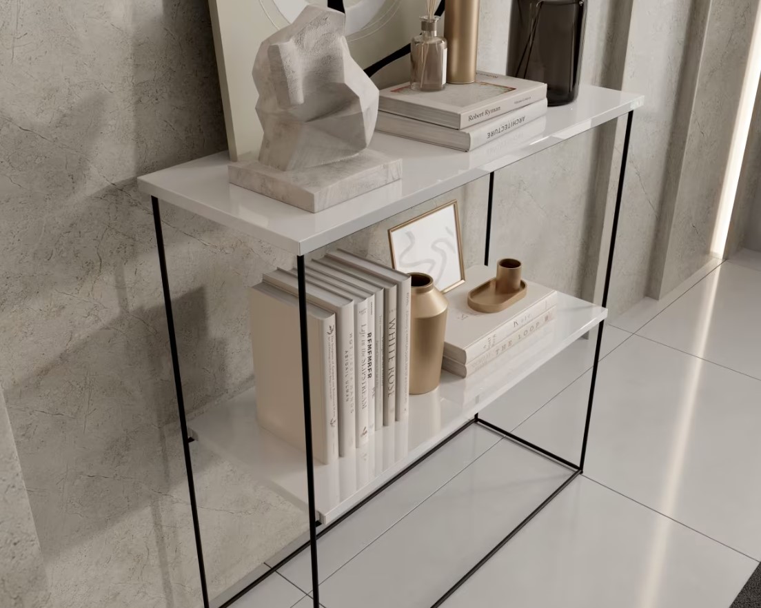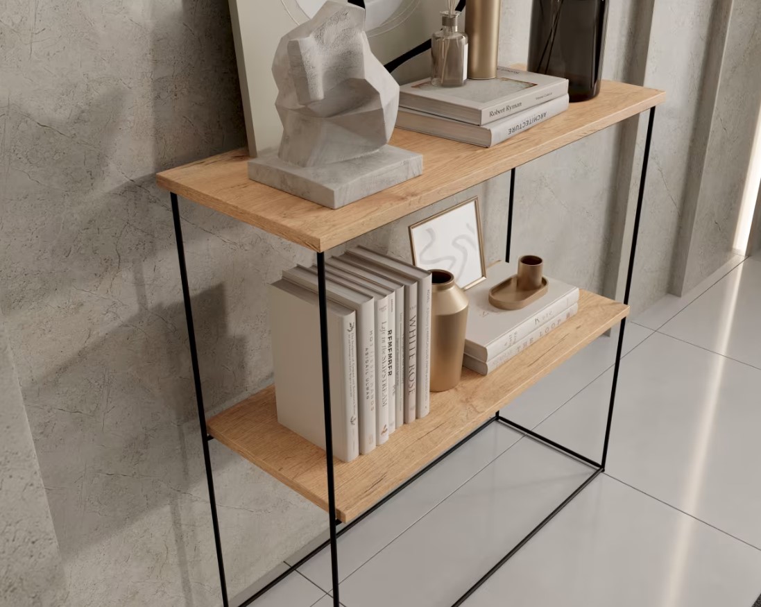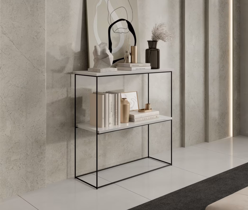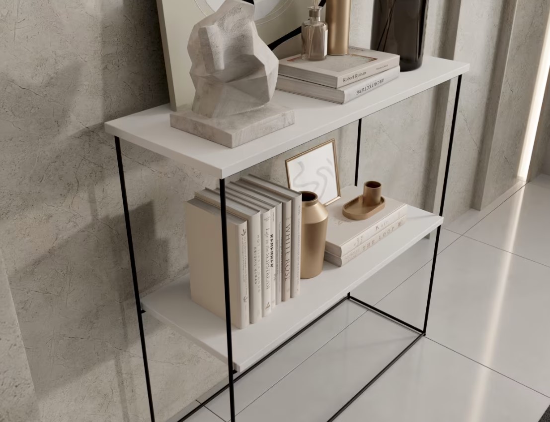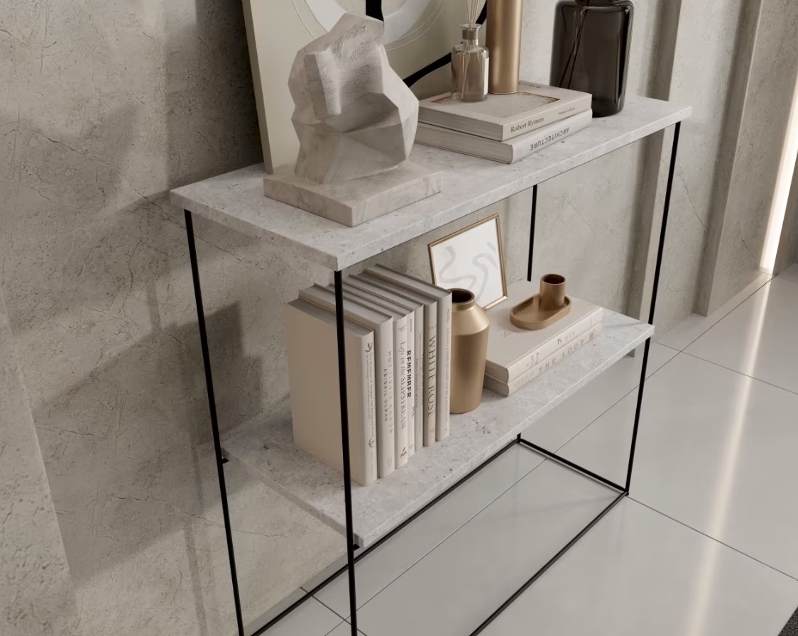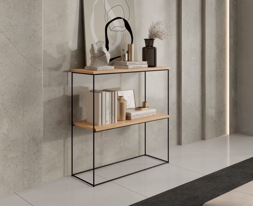 Príručný stolík TONI | čierne nohy predstavuje štýlový a súčasný nábytkový prvok, ktorý sa skvele hodí do rôznych interiérov – od čistých minimalistických až po dynamické prostredie. Jeho dominantným rysom sú nožičky z drôteného materiálu, ktoré konzole dodávajú vzdušnosť a moderný dizajn. Jednoducho tvarovaný vrch harmonizuje s detailne prepracovanou kovovou konštrukciou podnože, čím vzniká vyvážený a esteticky celok. Príručný stolík má možnosť výberu v niekoľkých farebných prevedeniach hornej a spodnej dosky.