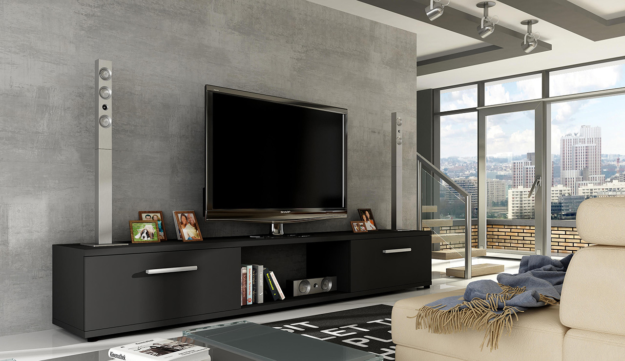 BIM TV stolík Woody 4D, 180 cm, čierny matný