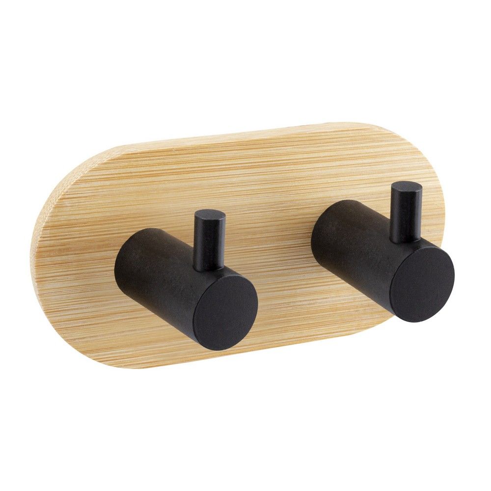 Dvojitý háčik na uterák | AWD02091764 z bambusu, ktorý je kombinovaný s prvkami z lakovanej ocele. Čistenie je veľmi jednoduché, stačí zotrieť navlhčenou handričkou.