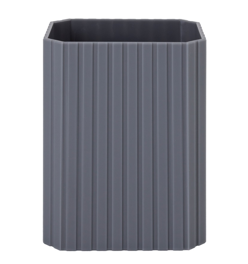 Pohár na kefky ARIETA | AWD02192044 je moderný a funkčný doplnok do kúpeľne, vyrobený v elegantnej antracitovej farbe. Minimalistický tvar a matné prevedenie umožňujú jeho ľahké začlenenie do moderných, industriálnych či loftových interiérov. Pohár na kefky je ideálny na každodenné použitie v domácich, hotelových alebo kancelárskych kúpeľniach. Hladký povrch zjednodušuje údržbu a je odolný voči vlhkosti.