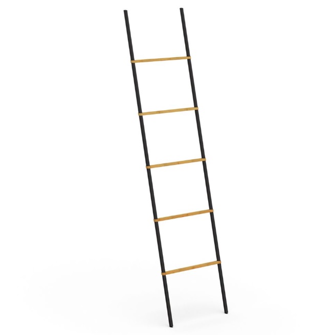 Stojan na uteráky | AWD02061904 v tvare rebríka predstavuje štýlové a praktické riešenie pre uskladnenie uterákov v kúpeľni. Vďaka svojej kompaktnosti pojme aj viacero veľkých uterákov, čo ho robí ideálnym aj pre menšie priestory. Stojan na uteráky má kombináciu čierneho kovu a prírodného bambusu prináša moderný, no stále prirodzený vzhľad, ktorý sa hodí do každého kúpeľňového interiéru. V ponuke máme aj iné kúpeľňové doplnky.