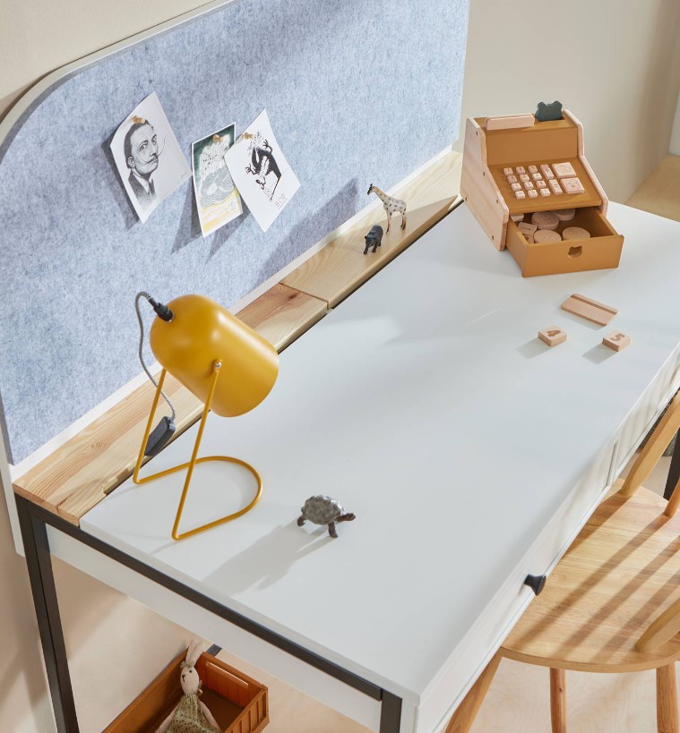 Panel za písací stolík je vyrobený z kvalitného laminátu s panelom EcoPET, ktorý pohlcuje rušivé zvuky a zvyšuje koncentráciu dietaťa.