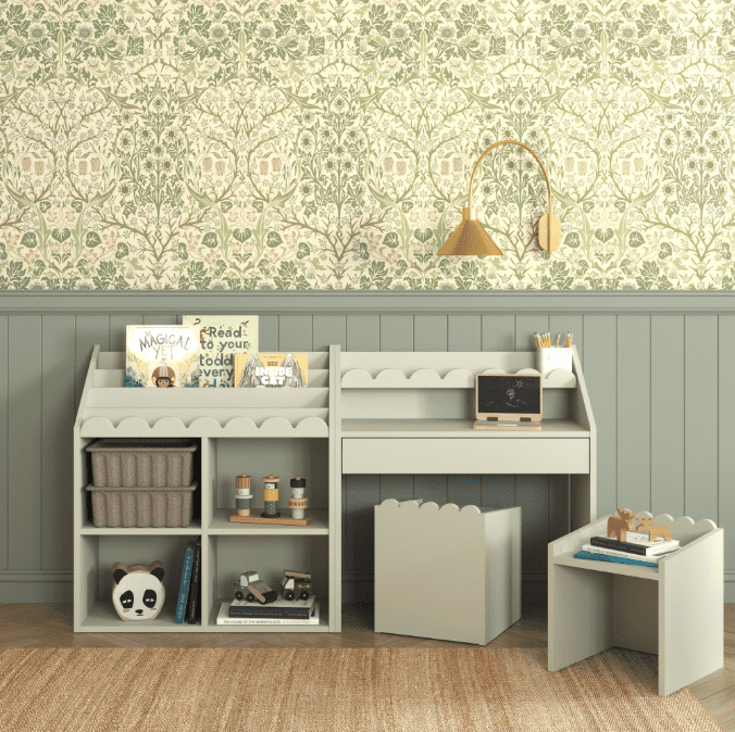 Hľadáte funkčný a zároveň štýlový detský stolík, ktorý podnieti fantáziu vášho dieťaťa? Tento minimalistický detský písací stolík BOOK NOOK s poličkou je navrhnutý špeciálne pre potreby malých školákov aj predškolákov. Elegantný svetlý dizajn s jemnými krivkami pôsobí moderne a zároveň bezpečne v každej detskej izbe. Stolík ponúka praktickú zásuvku na uloženie školských potrieb, pasteliek, zošitov či kníh. Horná polička s hravým vlnitým dizajnom slúži ako organizér na knihy alebo kreatívne potreby, čím podporuje poriadok a samostatnosť detí. Vytvorte pre vaše dieťa miesto, kde si bude rado kresliť, učiť sa a tvoriť.