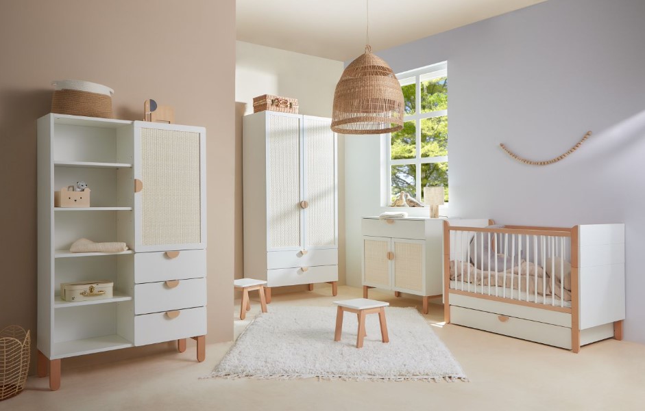 V tomto prípade naozaj platí, že v jednoduchosti je krása. Regál z kolekcie RATATA vytvorí v detskej izbe prostredie plné harmónie, prírody a pozitívnej energie. Kombinovaný regál RATATA má päť otvorených políc, jedny dvierka a tri zásuvky, súčasťou je samospomalenie pri ich zatváraní. Regál je možné namontovať aj na stenu. Biely regál skvelo zapadne do interiéru v boho štýle, drevo v kombinácii s ratanovým pletením dodá detskej izbe pocit vzdušnosti.
