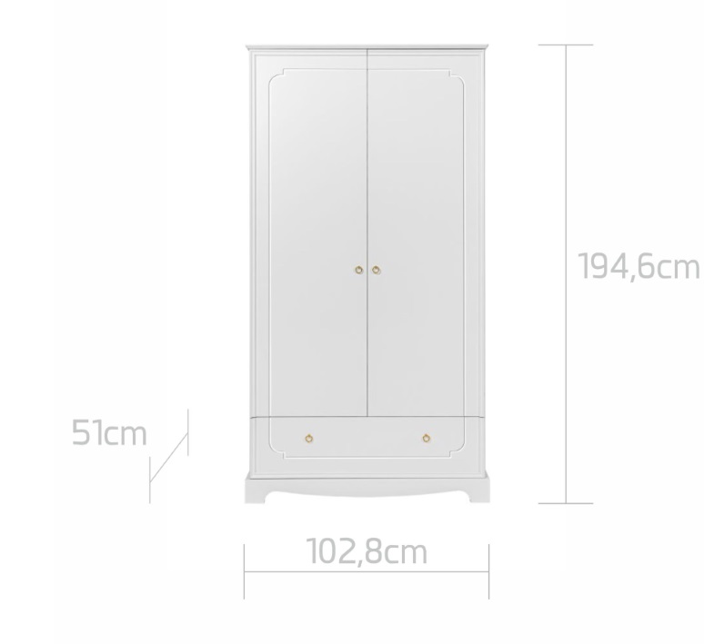 V tomto prípade naozaj platí, že v jednoduchosti je krása. Štýlová kolekcia ROYAL je špeciálne navrhnutá pre najmenších, jemné a čisté línie oživia nenápadné zlaté úchytky. Použité kvalitné materiály sú odolné voči poškodeniu a vlhkosti a sú zdravotne nezávadné, spĺňajú tak aj tie najvyššie nároky na kvalitu a bezpečnosť. Šatníková skriňa vo farebnom prevedení latte, je dvojdverová so zásuvkou, plusom sú BLUM pojazdy na spomalenie zatvárania zásuvky. Skriňu je potrebné namontovať aj na stenu. Doprajte svojmu dieťatku izbičku, ktorá pôsobí vyvážene, kompaktne a útulne zároveň.