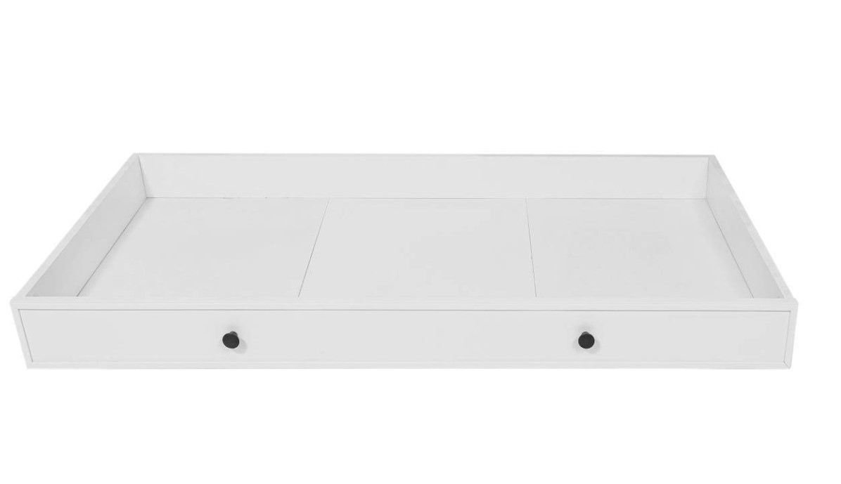 Zostava LUMI vyniká svojou jednoduchosťou a minimalistickým dizajnom. Vytvorí v detskej izbe ideálne prostredie pre rast vášho dieťatka. Kolekcia je vyrobená v nežnej bielej farbe, je oživená čiernymi nohami a úchytkami. Zásuvka pod detskú postieľku LUMI je na kolieskach, ktoré majú gumu proti poškriabaniu podlahy. Zásuvka je vhodná pod postieľku LUMI. Vytvorte doma priestor, kde môže vaše dieťatko rásť a snívať.