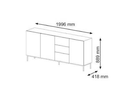 Komoda Ravenna je moderne spracovaná, vyrobená z kvalitných materiálov. Kovové nohy podopierajúce komodu, zaisťujú stabilitu a dodávajú osobitý charakter. Vybavenie nábytku systémom „ push to open “ zaručuje pohodlné otváranie.