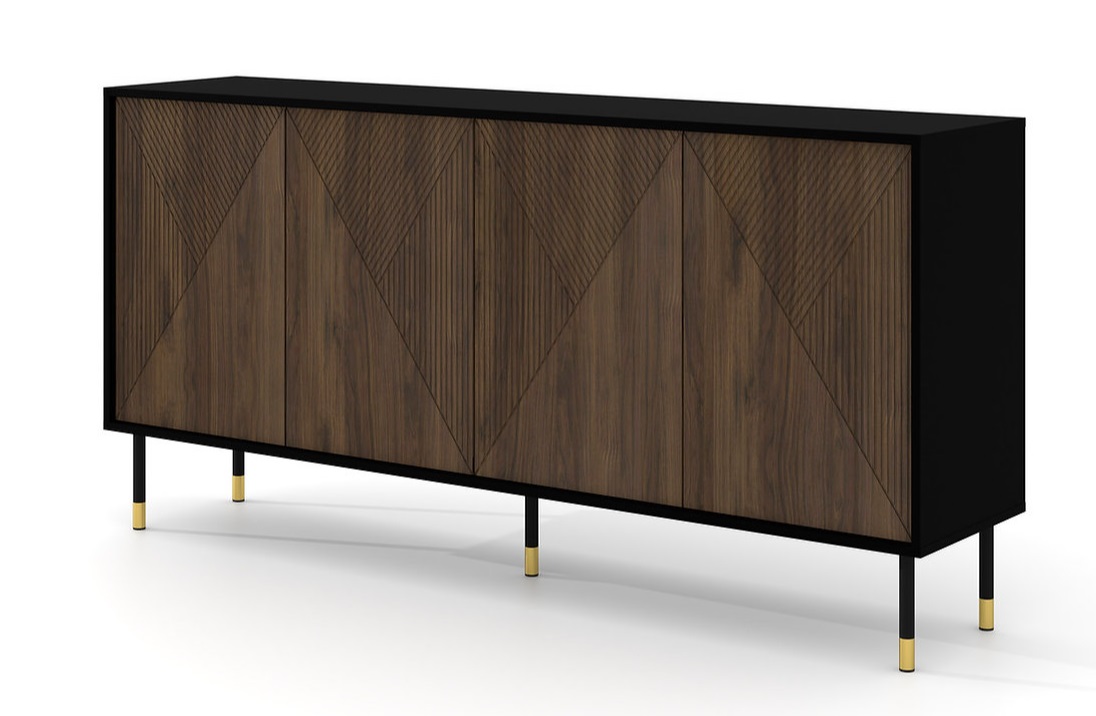BIM Komoda Woody 4D, 180 cm, čierny mat/pacifický orech